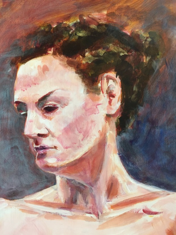 Of course I lightened the background w a dry white and cobalt blue. It helps soften some of her edges. Probably could do more but I am leaving her alone for now.