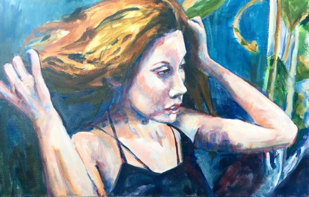She’s gone thru a lot more tweaking since then. I spent hours trying to get her right before I started the painting. You can see in this photo her nose and mouth are off.