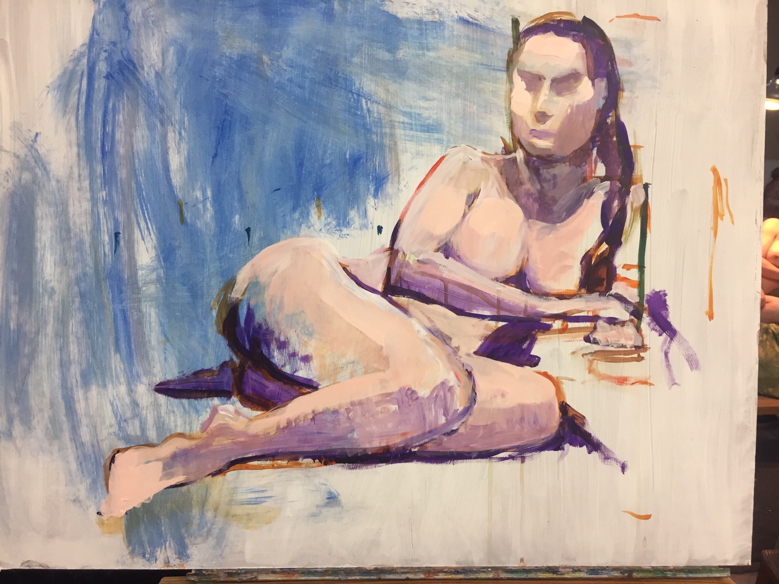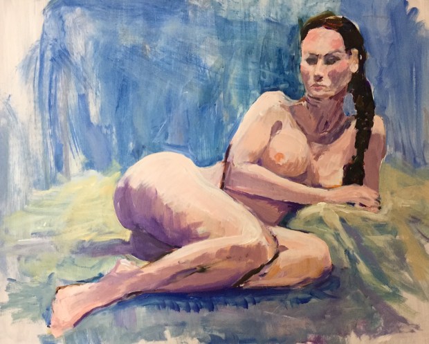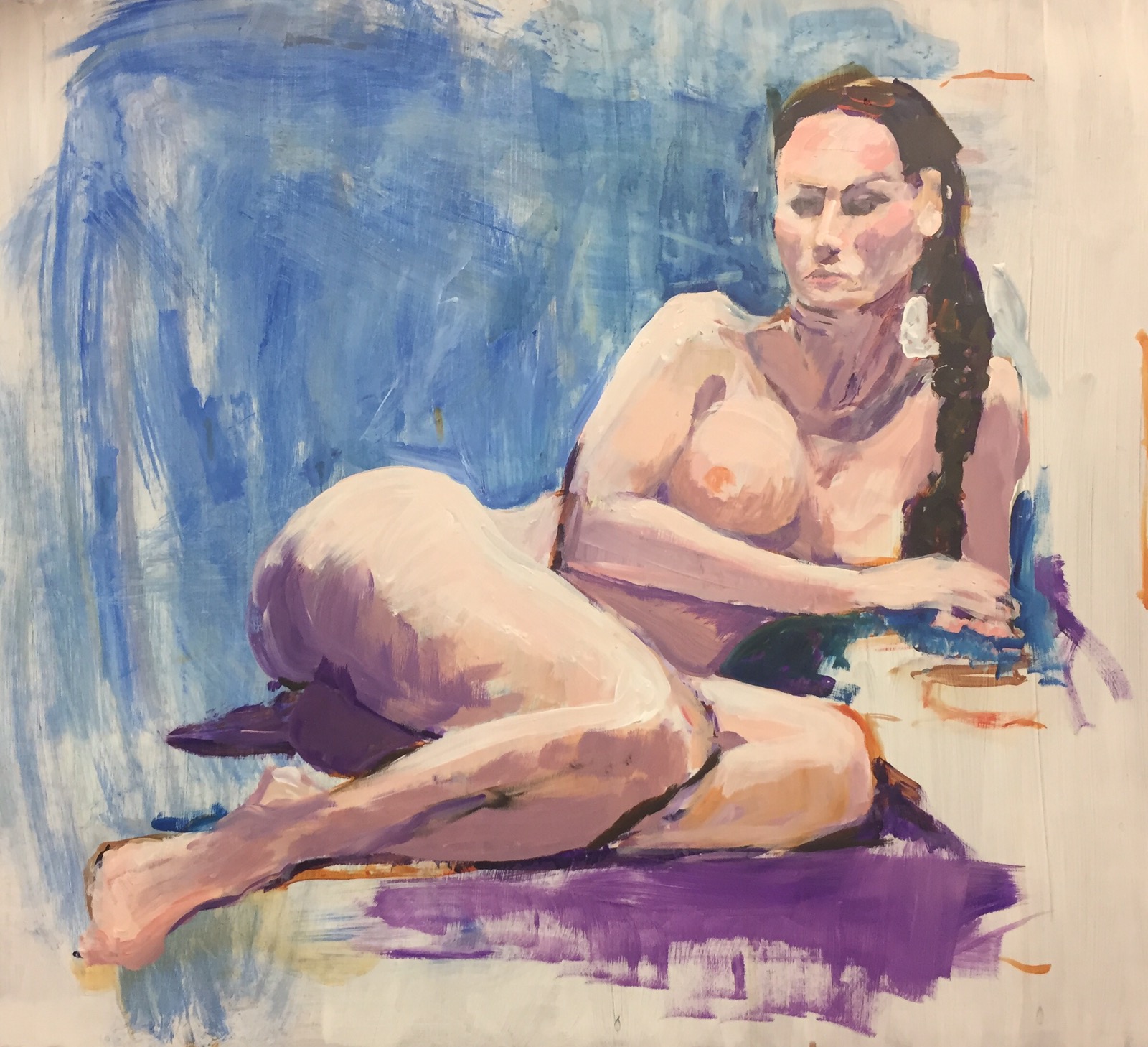 Ilenia 24″ x 30″ Acrylic I have been paying attention to what Al said and trying to block everything in exactly before I start painting even though it’s more fun to just paint paint paint but the results are always disappointing when it comes to the human figure. They are almost always just off a bit here and there.