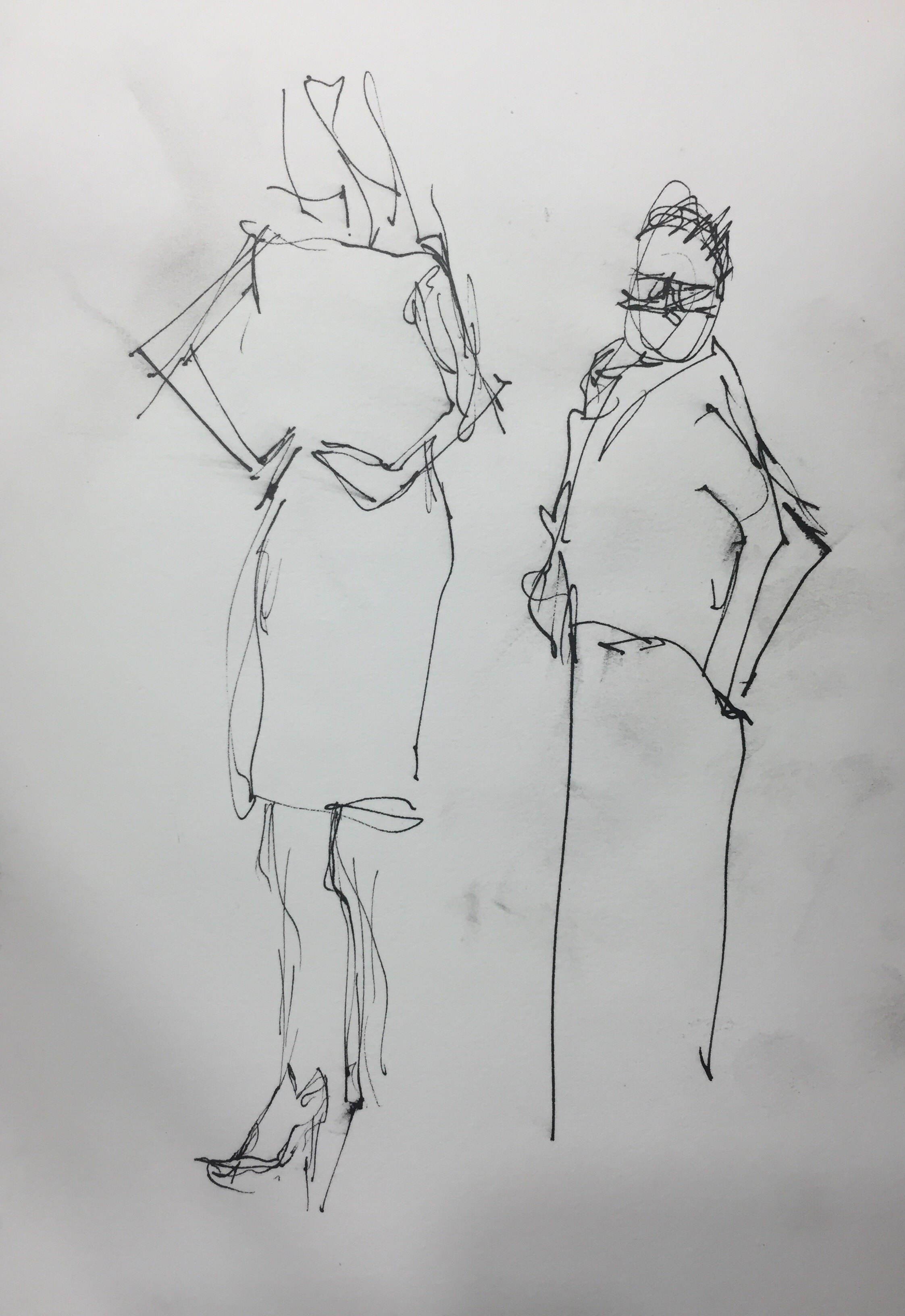 Hard to resist drawing James with one of his many ladies. Turns out the girl in the foreground is actually newly wed to James Bond who you can see in the background.