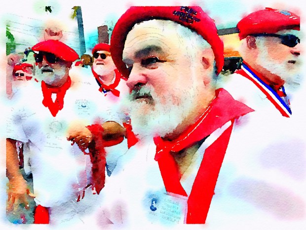 The Papas walk!! An imitation of Running with the Bulls in Pamplona Spain. Starting at Sloppy Joes the papas walk around the block with a huge fake bull on wheels. The day culminates in the coronation of the NEW Papa look alike winner.