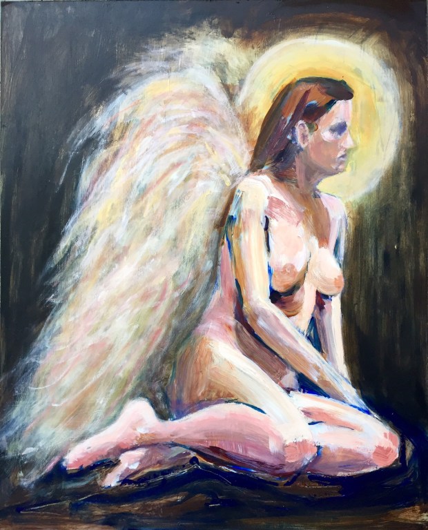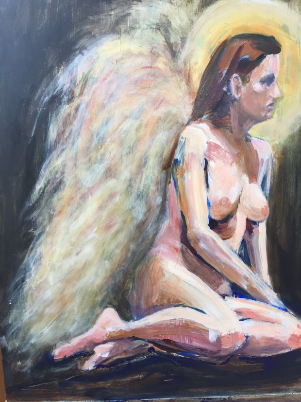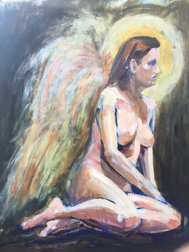 She’s been thru a lot of changes now. Really love her wings. In fact really like EVERYTHING except one tiny thing. Her right breast. How did it get so round?! But that’s easy to fix. At least I think it is.