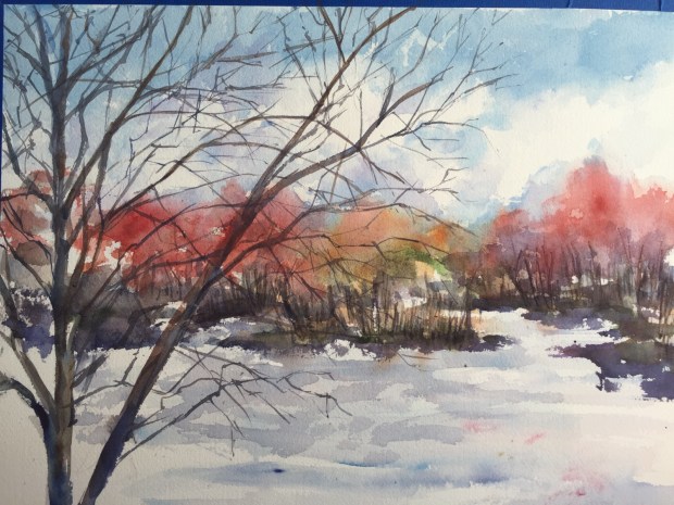 I guess I was actually Plein air painting for once outside. Usually I stay out of the weather and paint in the car or thru the window at my house because it’s often far too hot or too buggy along the river.