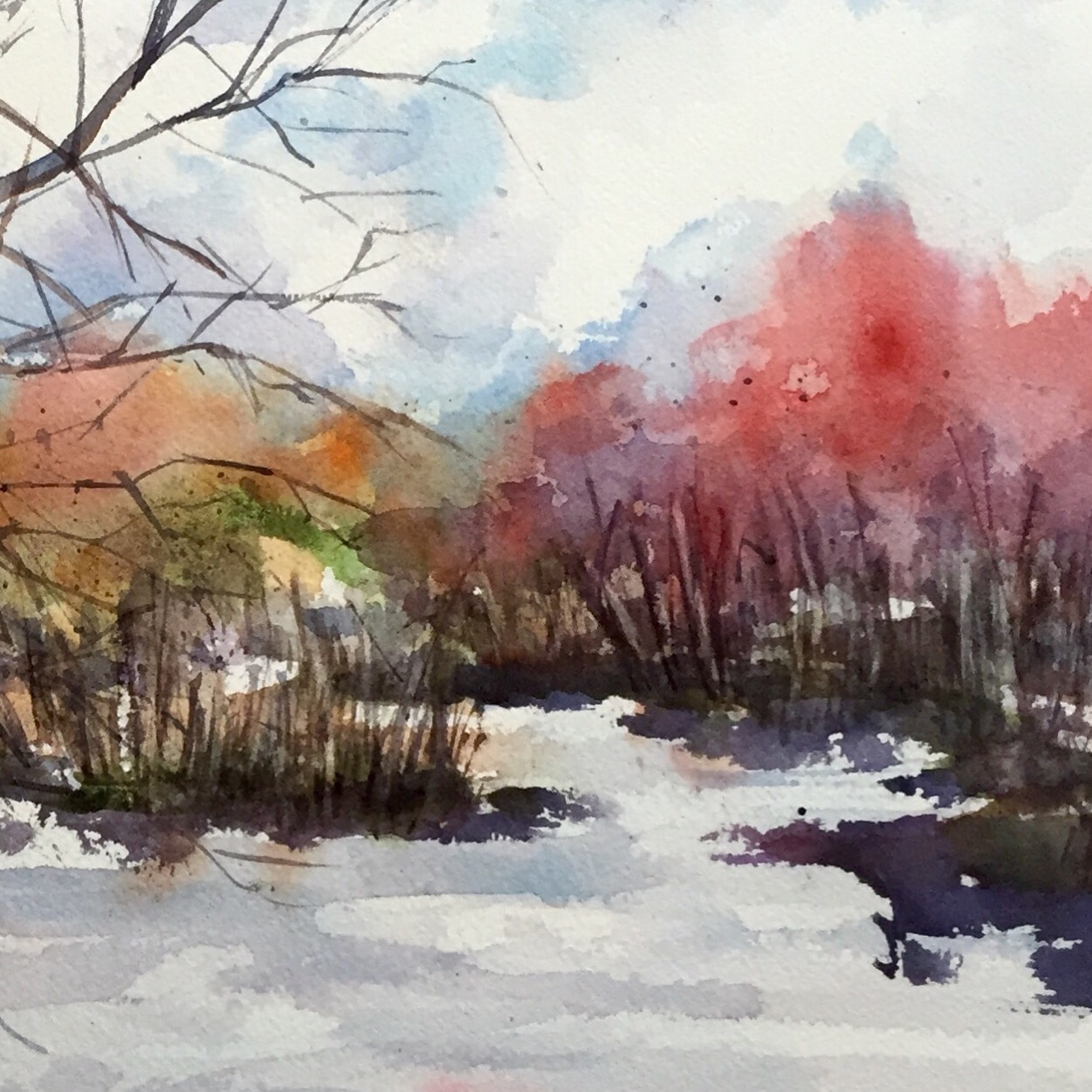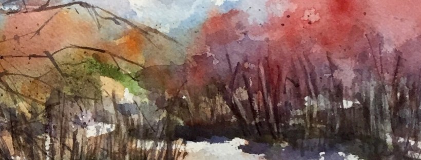 This is one of the things that I painted while I was there. The red trees are red oaks. Did you know that this is the only time of the year you can tell they are red oaks- because they leaf out with a red blush.