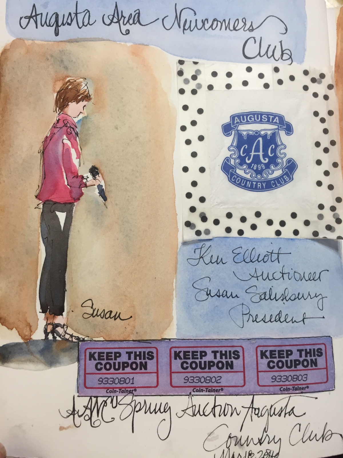A sketch of our auctioneer Ken Elliot and his two helpers. I guess you can tell it was St Patricks Day. Should have posted this a while ago.