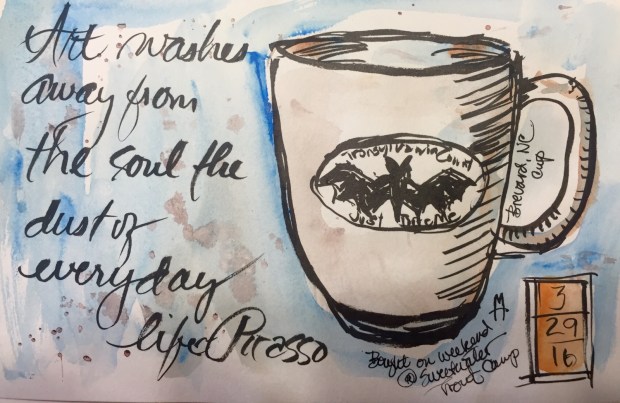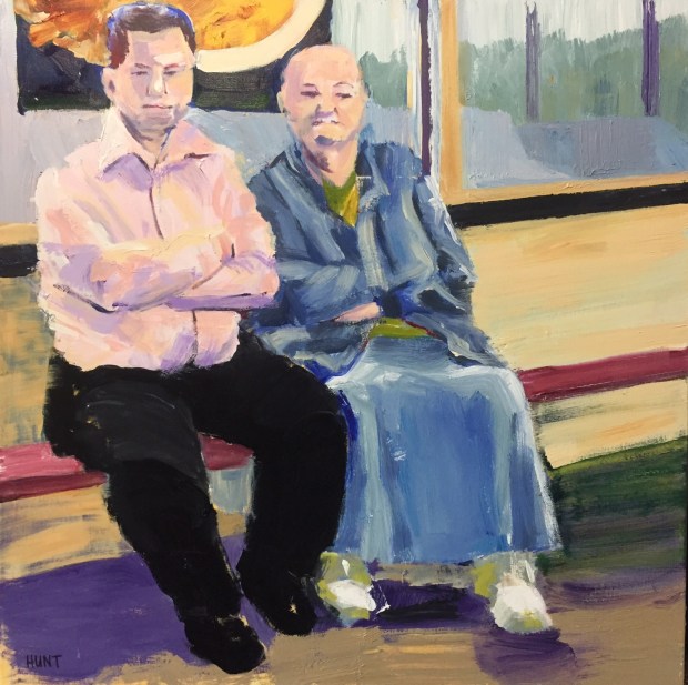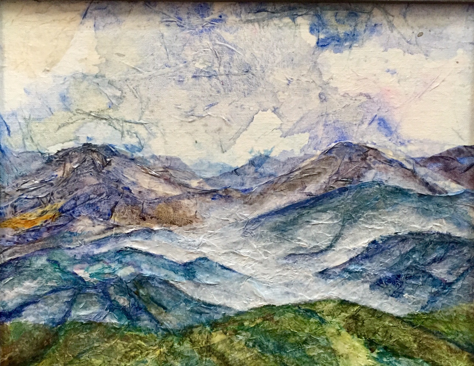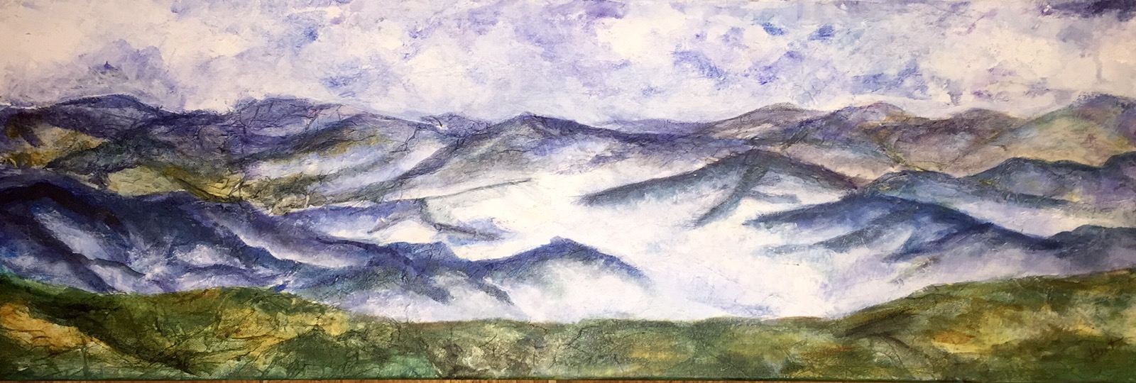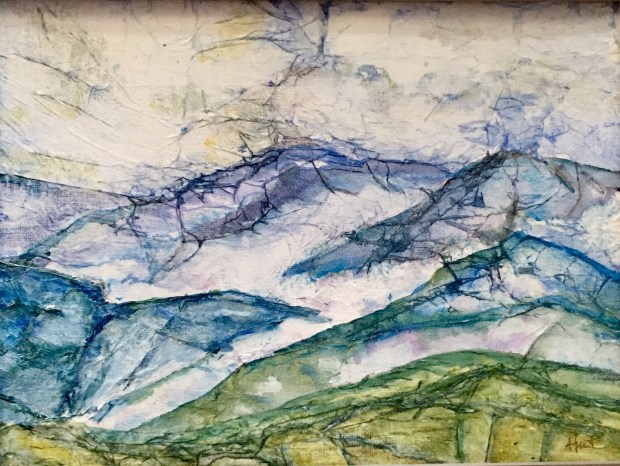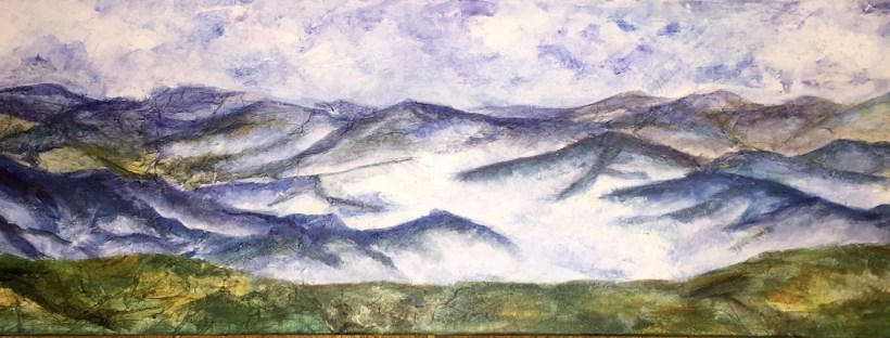 Colors used artist grade Golden and Liquitex Cerulean,Titanium white, Dioxzine Purple, Cobalt, Cad Yellow light, alizarin.