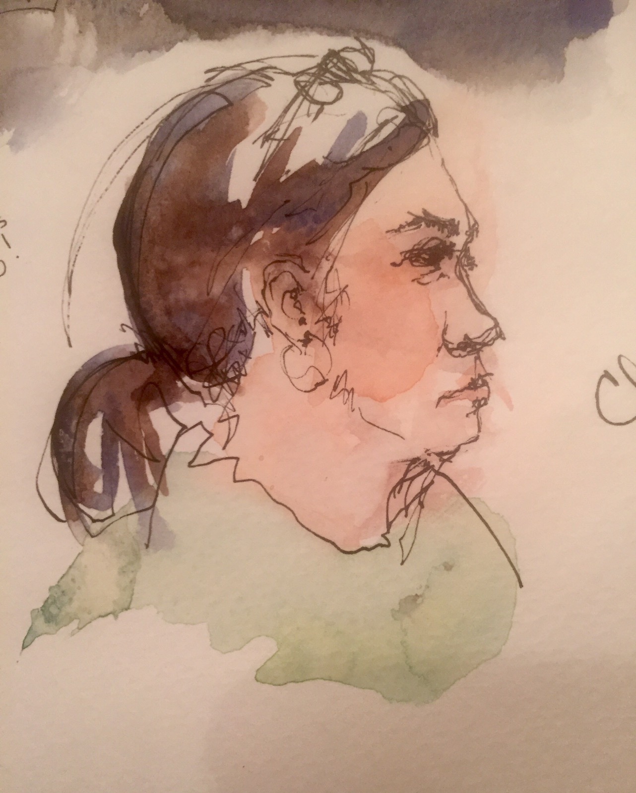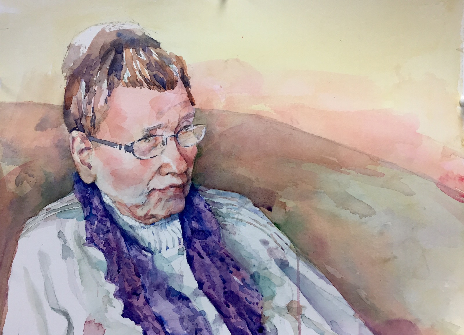 Lucy June aged 90 Painting done Thursday. I really like her knitted scarf.