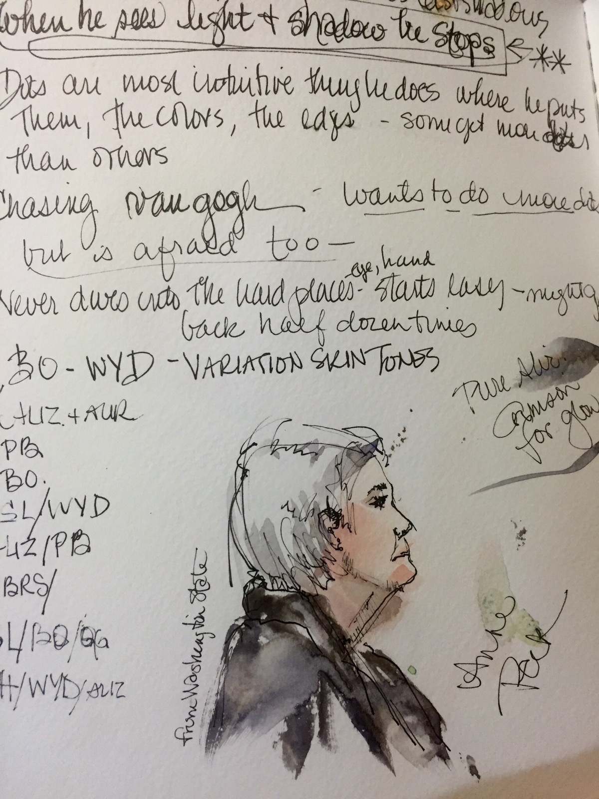Ted chose these colors because they are transparent watercolor. And NO not all watercolor is transparent. Cerulean isn’t. Both he and Jean Dobie limit their palettes to those colors that are transparent which allows their watercolors to have a great depth of color done with multiple layers. If they were not transparent the colors would turn to mud.