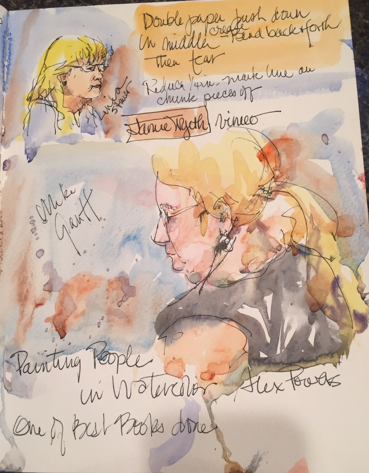 Hopefully they will be done soon. I almost filled up a Strayhmore 400 watercolor book with them. That’s a lot of notes. Now looking pretty and perky with watercolor highlights and at least ten sketches of my class mates.