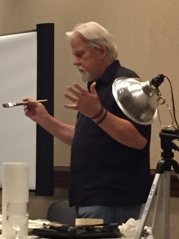He can talk and tell you why he painting what he is and turnout an a great painting in less than two hours.