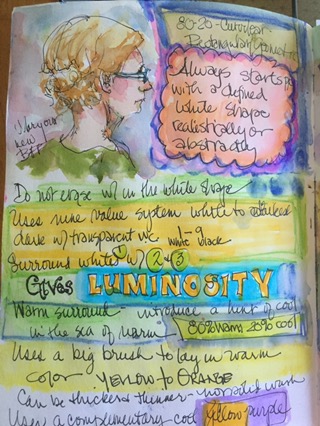 Once again these were painted with Ted Nuttalls transparent colors. The notes were colored with Winsor Newton watercolor markers, a caran d’ache watercolor pencil and a Daniel Smith watercolor crayon