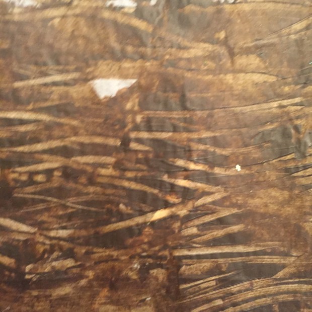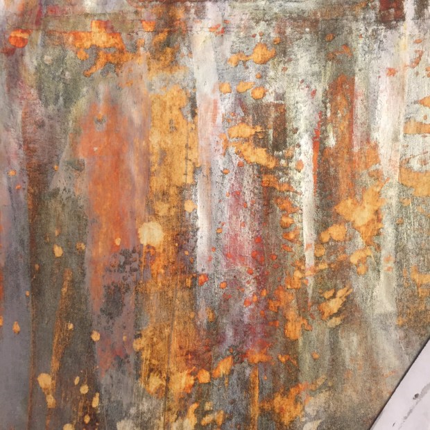 Oh before I forget the tree was done with a sea sponge. I also used Caran d’ache watercolor crayons to add color to the drawing – white yellow and orange.