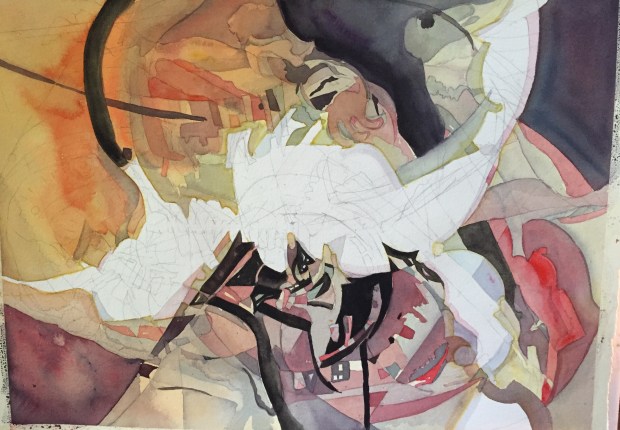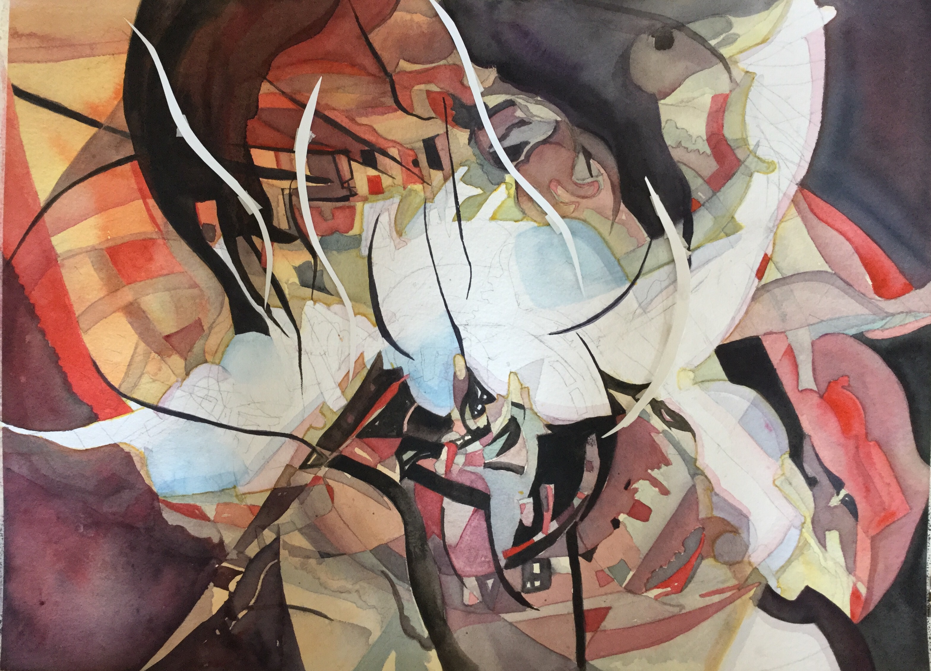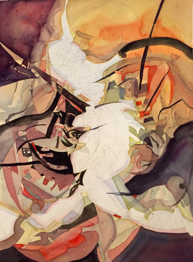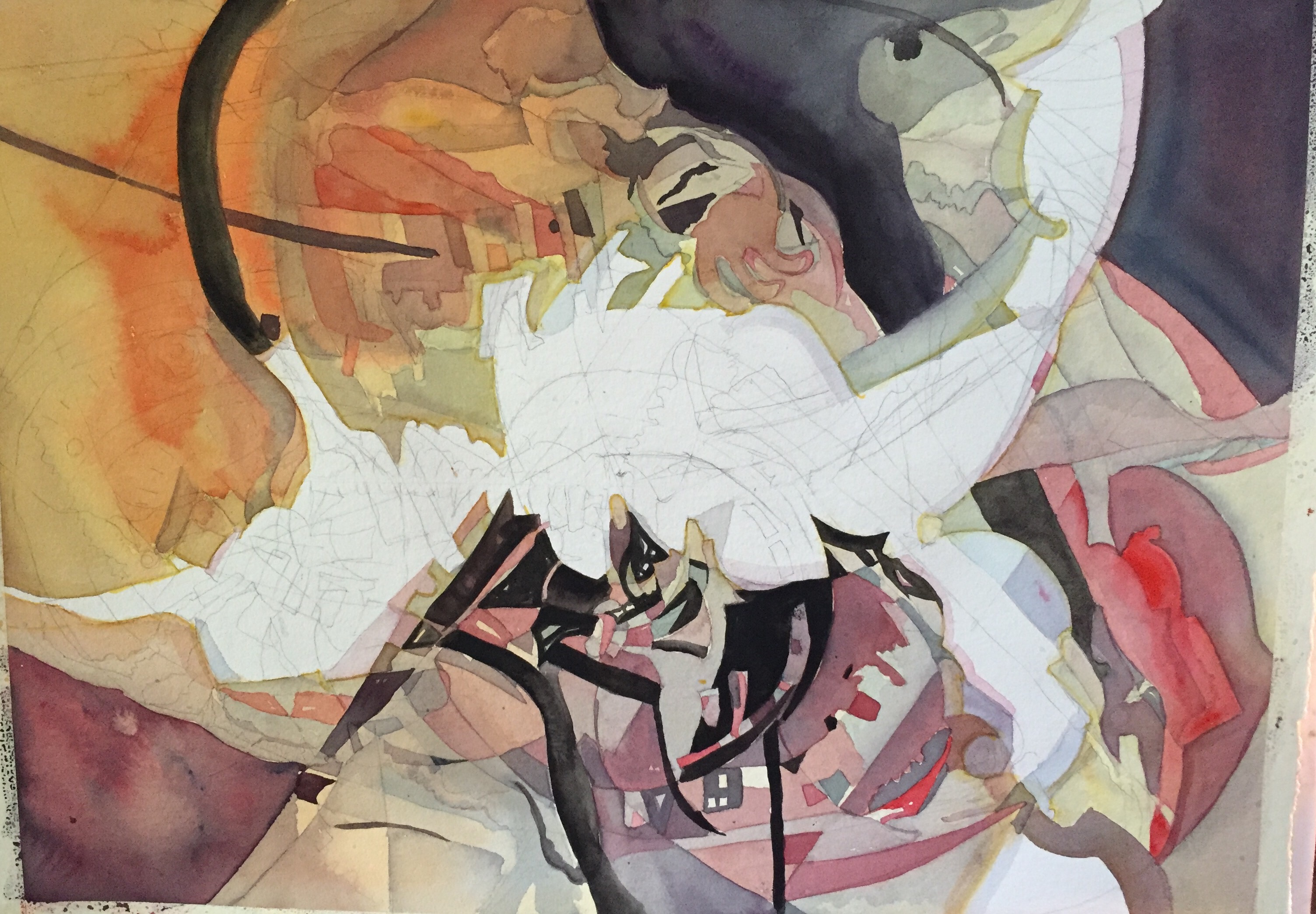 Been trying to see if I can make an. Abstract on my own without help from John Salimen. So far this is what I have done. I still have to collage and paint some with acrylic paint.