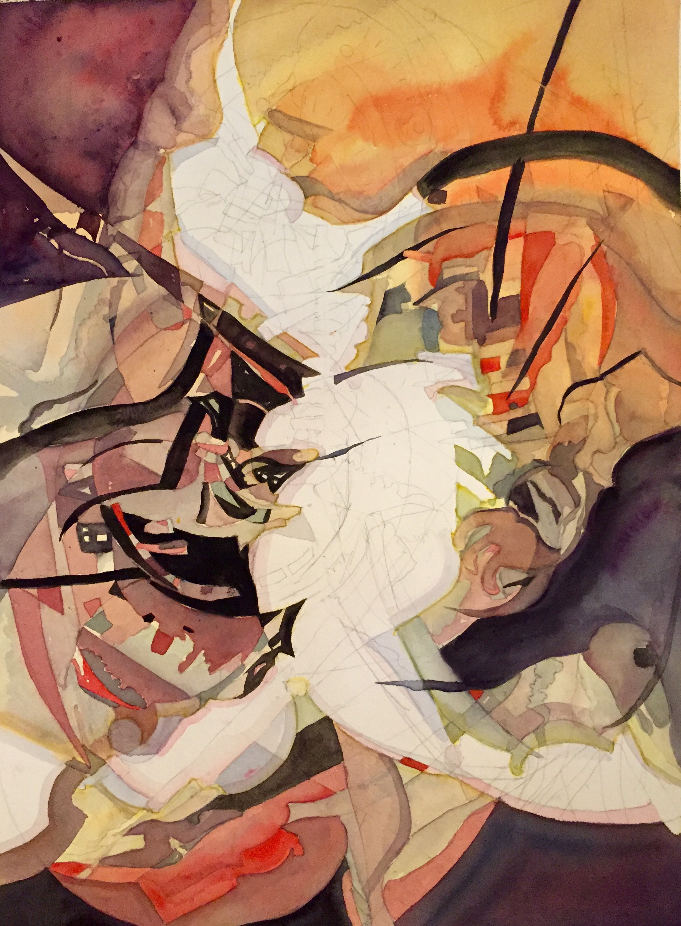 Background wash of yellow and red.