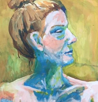 A face lift!! Remember I only painted in her perhaps an hour and half Saturday. This is a big painting. 24x 30″ in acrylic