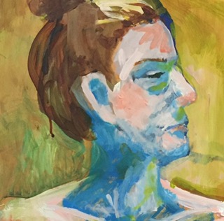 A face lift!! Remember I only painted in her perhaps an hour and half Saturday. This is a big painting. 24x 30″ in acrylic