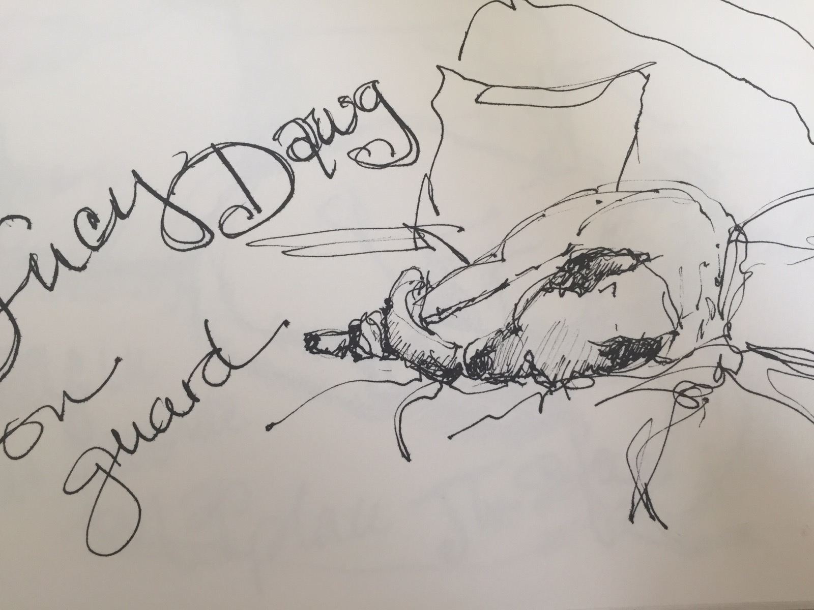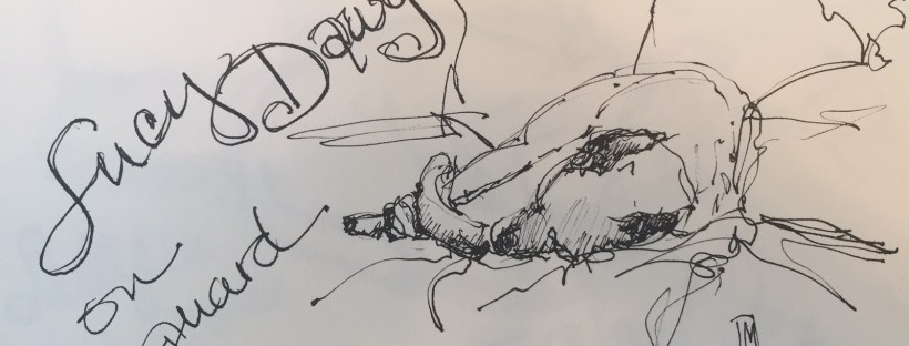 My grandchildren a beloved Lucy Dawg most frequently found snoozing on the sofa. I mean on guard dog duty. She’s. Briard Collie brindle rescue dog and a real sweetheart.