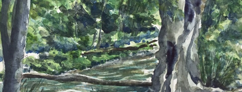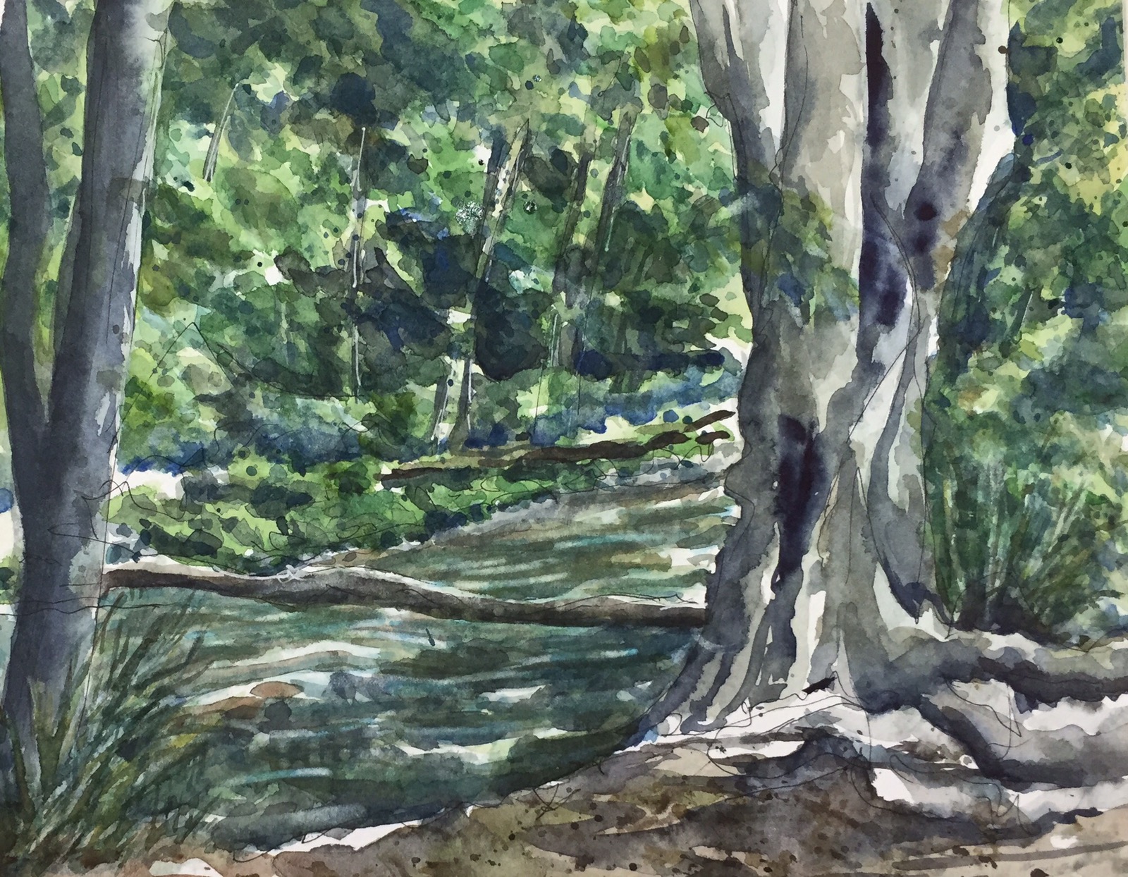 I tried adding more darks to the foliage and Thalo blue to the river.