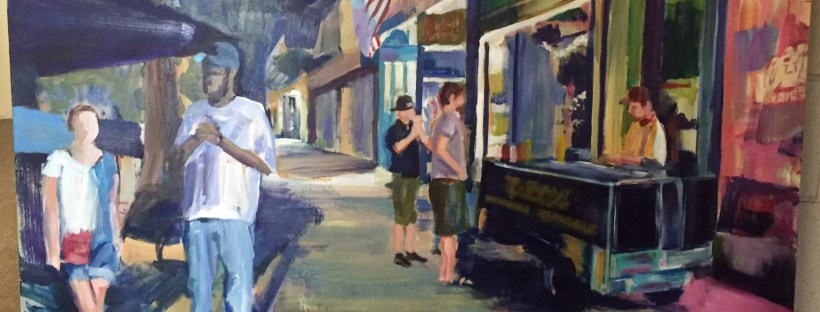 Day 808 -Getting Done September 20, 2016Leave a comment 11th and Broad Acrylic 36×48 Getting done. Still needs some tweaking of course. They always do. Sometimes even after you sign them. Last Wednseday. Last Monday Wednesday two weeks ago. Hope I finish tomorrow or next week. Thanks for checking by. Margaret who needs a nap.