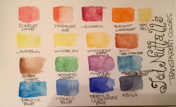 Once again I used Ted Nuttalls transparent palette plus cerulean for the sky. Maybe next time I will try Pthalo blue.