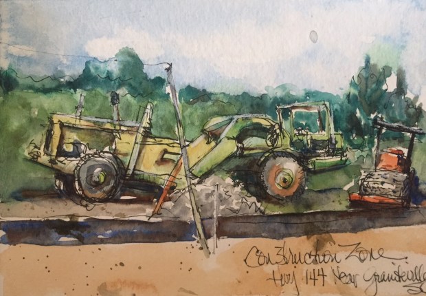 Ever since I drew those elephants and camels last week I have been obsessing over heavy equipment. Maybe it’s my grandsons influence. He loves them. Following that logic I guess I need to do a fire truck too.