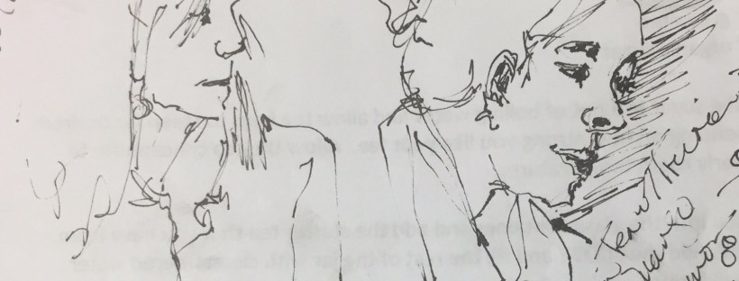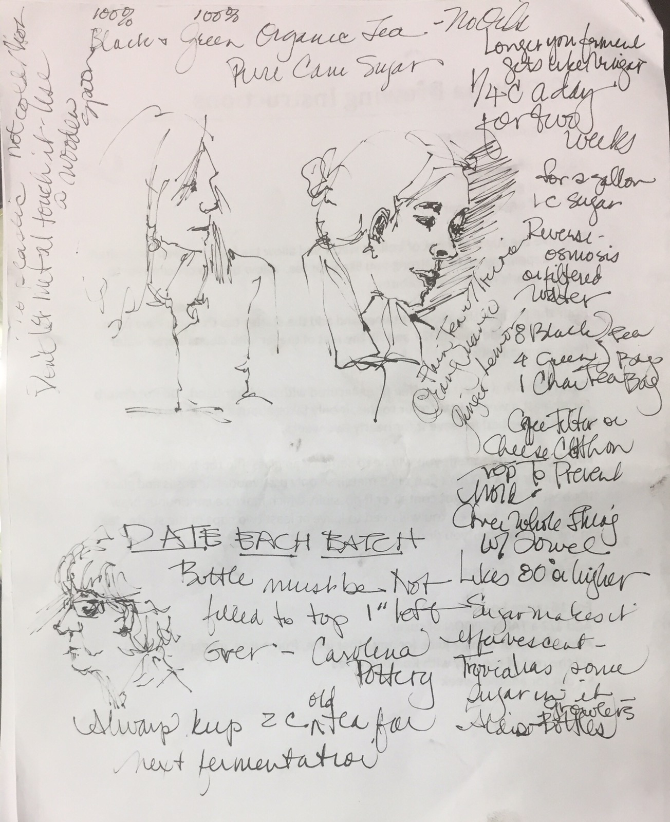 I drew on the back of my hand out. Oops. Amid my notes on how to make kombucha I drew the teacher and my classmates.