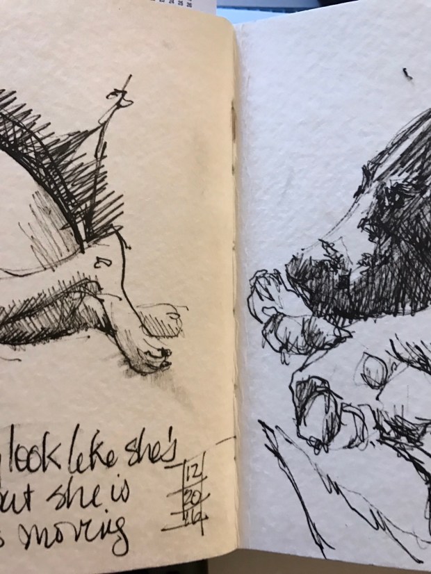 Babysitting the dogs in Atlanta.Some dogs are just interesting to draw and Livia is. Livia my sons pitbull lies around striking elegant poses.