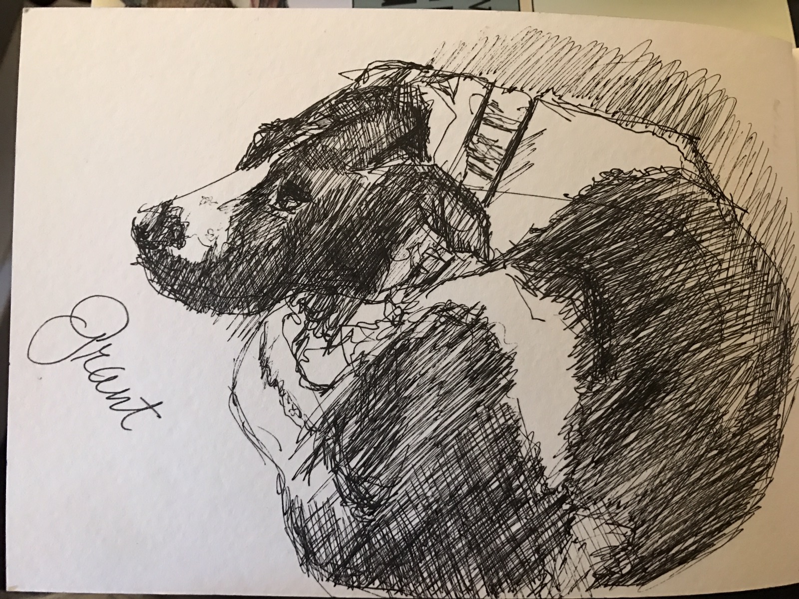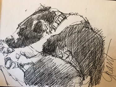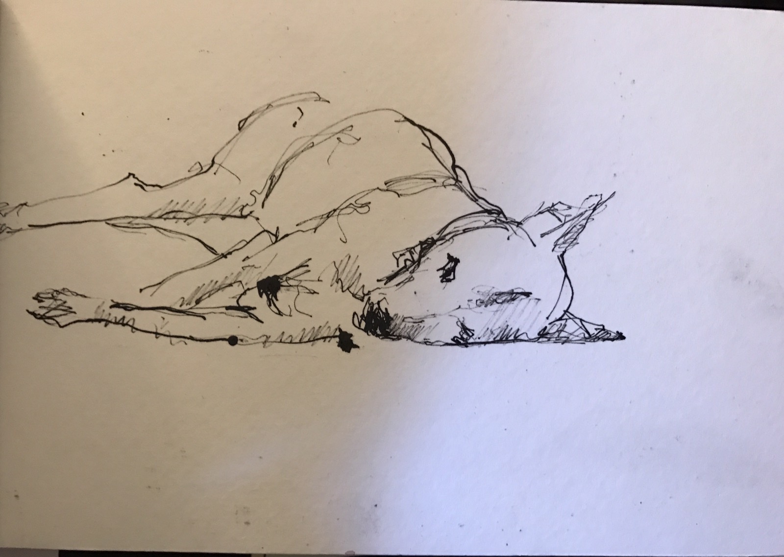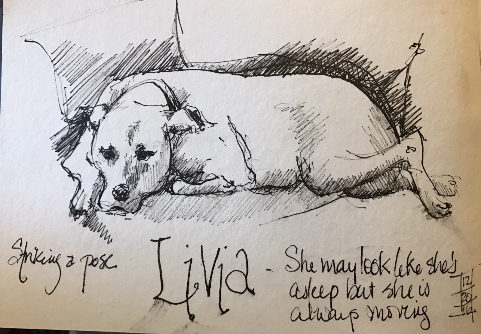 Babysitting the dogs in Atlanta.Some dogs are just interesting to draw and Livia is. Livia my sons pitbull lies around striking elegant poses.