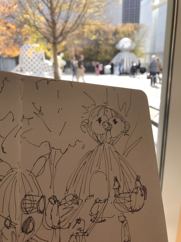 I do love drawing animals. I bought this book for $5 at Sam Flaxs yesterday on their sales table upstairs. She bases her funky animal sketches on sidewalk cracks so something else to look for when I go out people watching today.