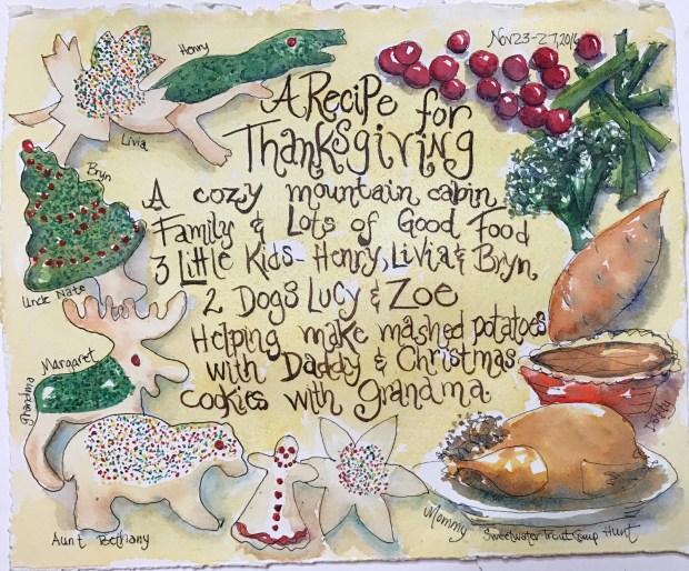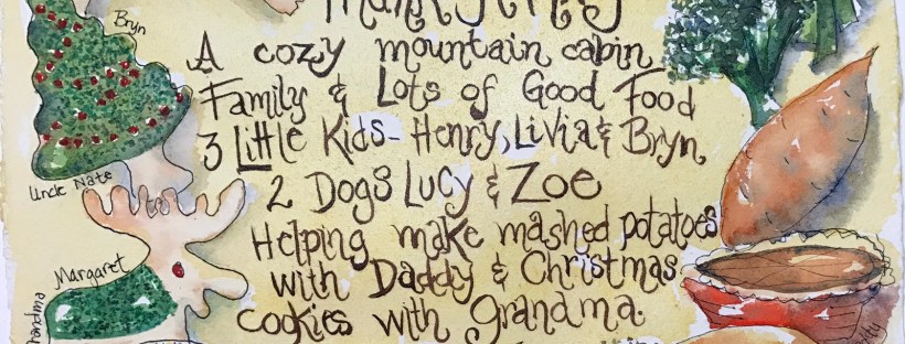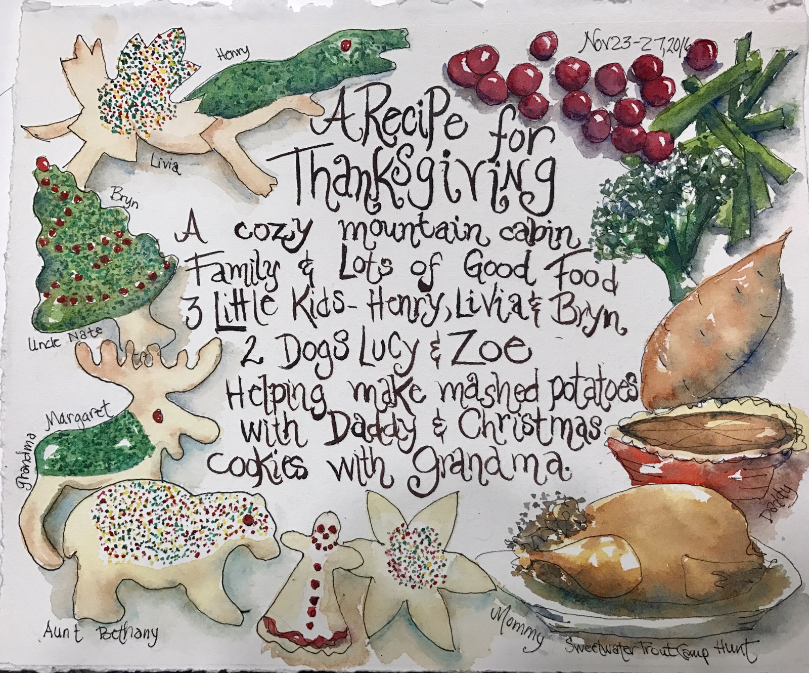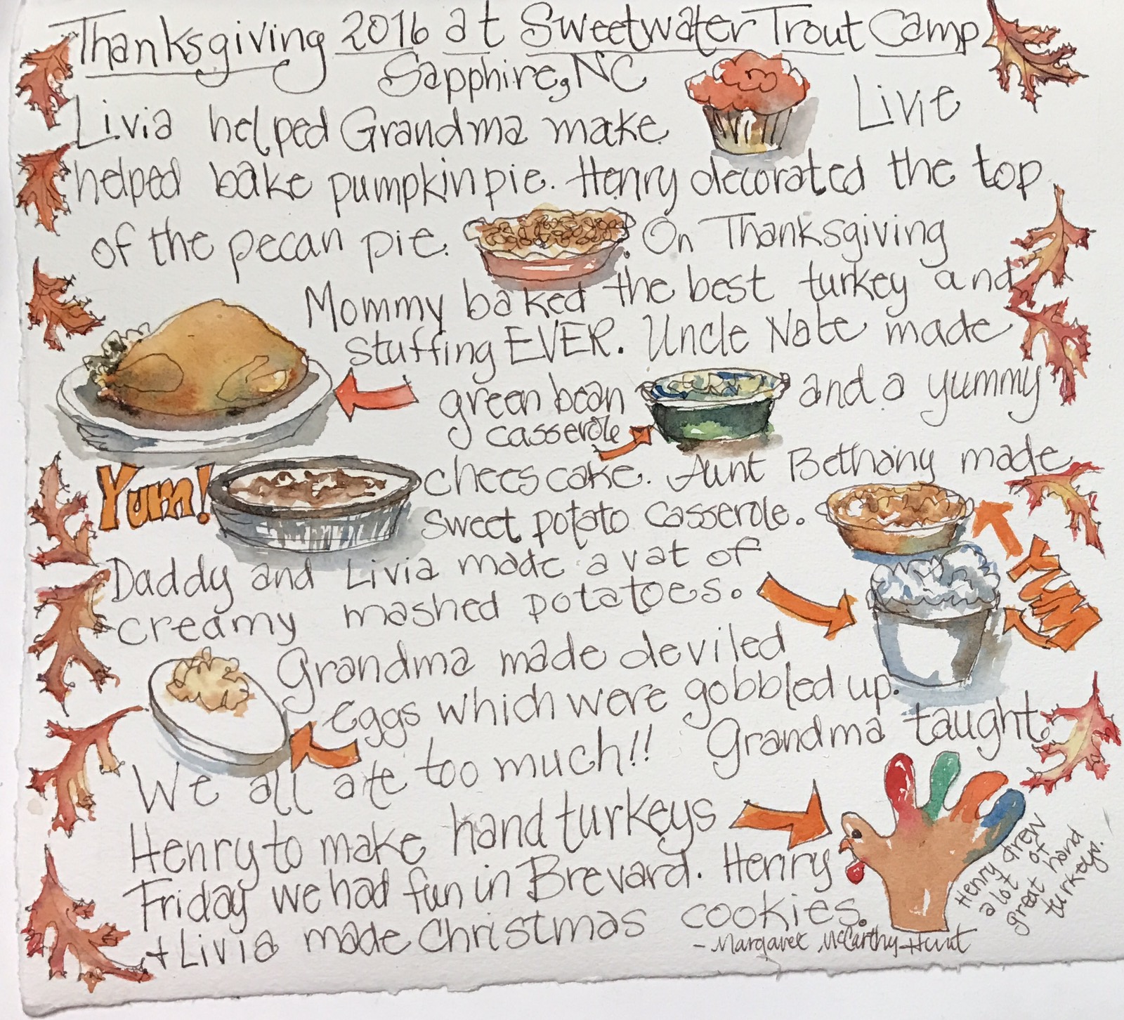 This is the back of the page. A page meant to be entertaining for a two year old and a four year old. My grandchildren Henry and Livia. I left a wide gutter on this back because sooner or later I hope to do enough if these to bind them into a journal of our days at the cabin.
