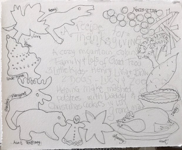What I am up to. A Thanksgiving journal page. Can’t wait to paint this.