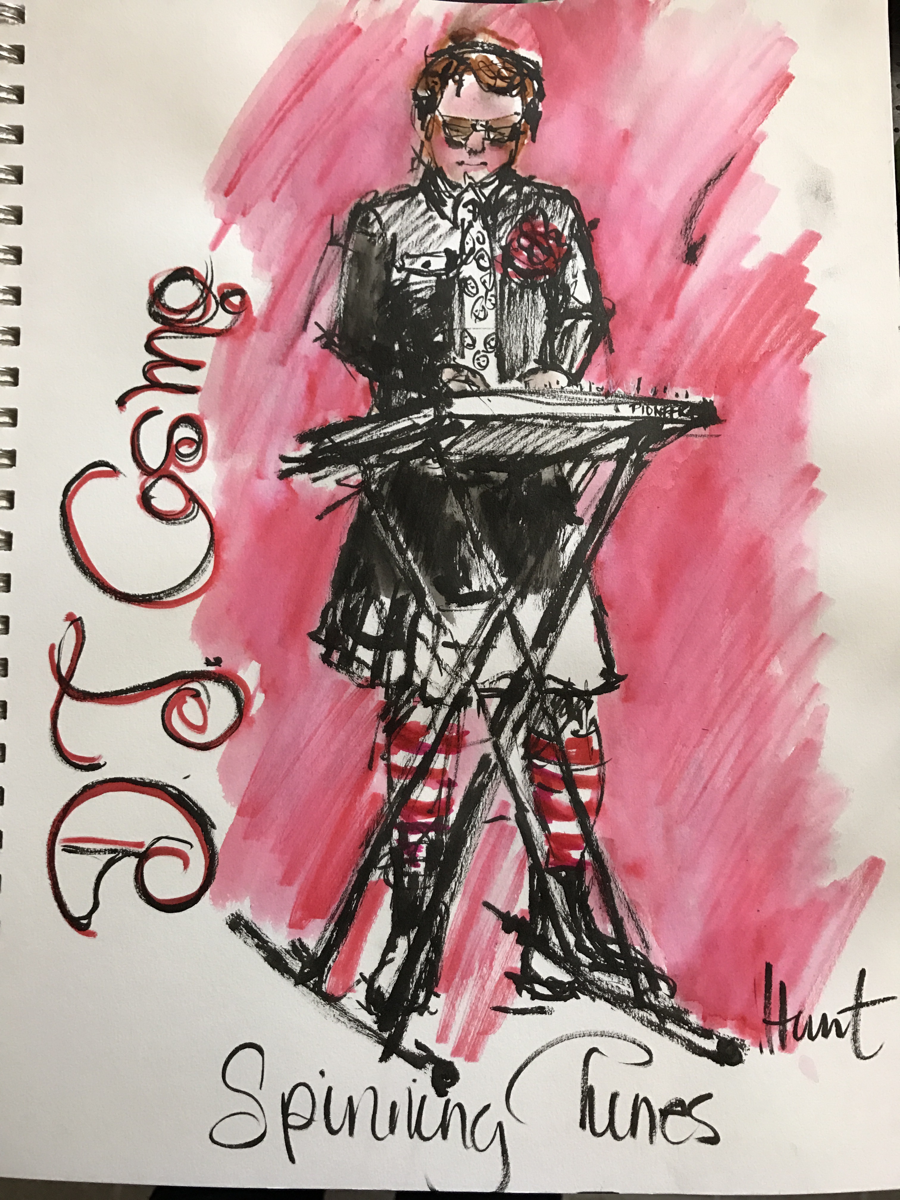 Our model last nite at Dr Sketchys was Paul “DJ Codec” who designs, orchestrates, creates the great awesome sometimes whacky music that accompanies each session of D Sketchys.