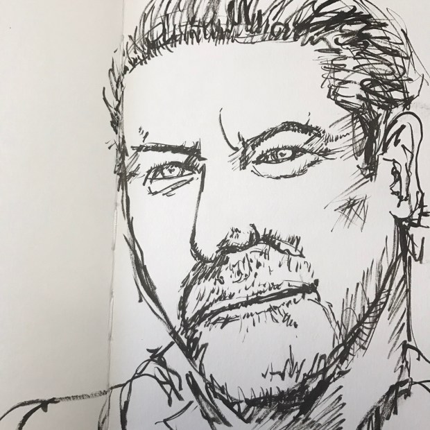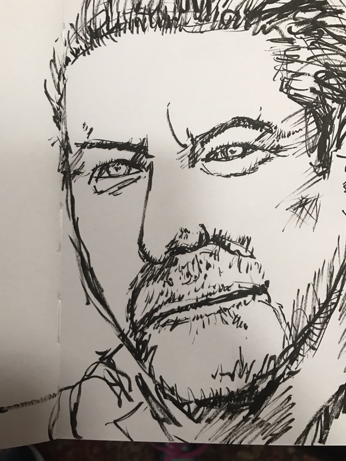 The sketch. I did add a smudge to the left hairline on the forehead. It was too square.