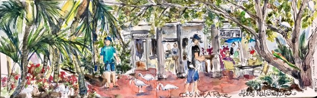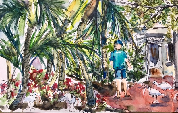 If you look carefully you can see ibis which kept walking through my drawing and an iguana which skittered everywhere.