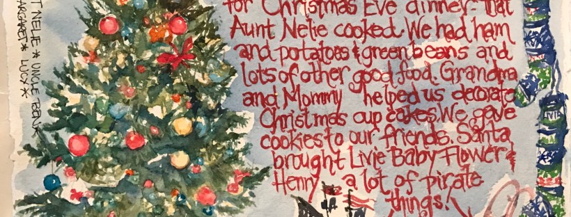 I am working on a hand bound memory journal book for my grandkids. This is page three. They are painted on sheets of 8×10″ 280# arches. Sooner or later I hope to bind them into a book.