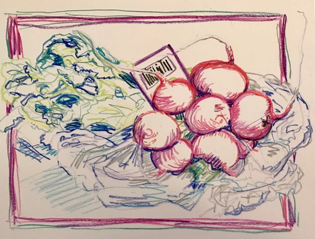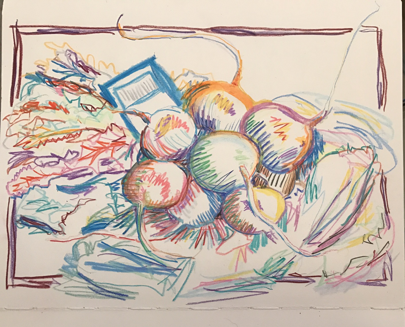 Once again we were to use as many cooors as we could to draw these after drawing the first one in the colors the object is. I was lazy and left them on the plastic bag.