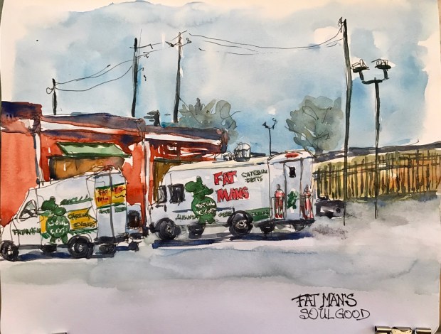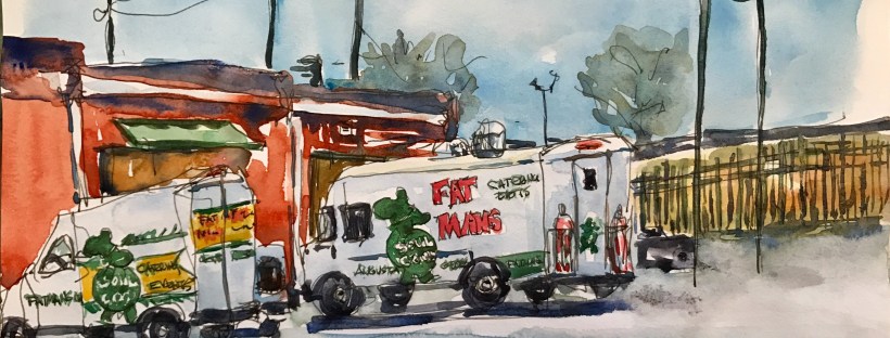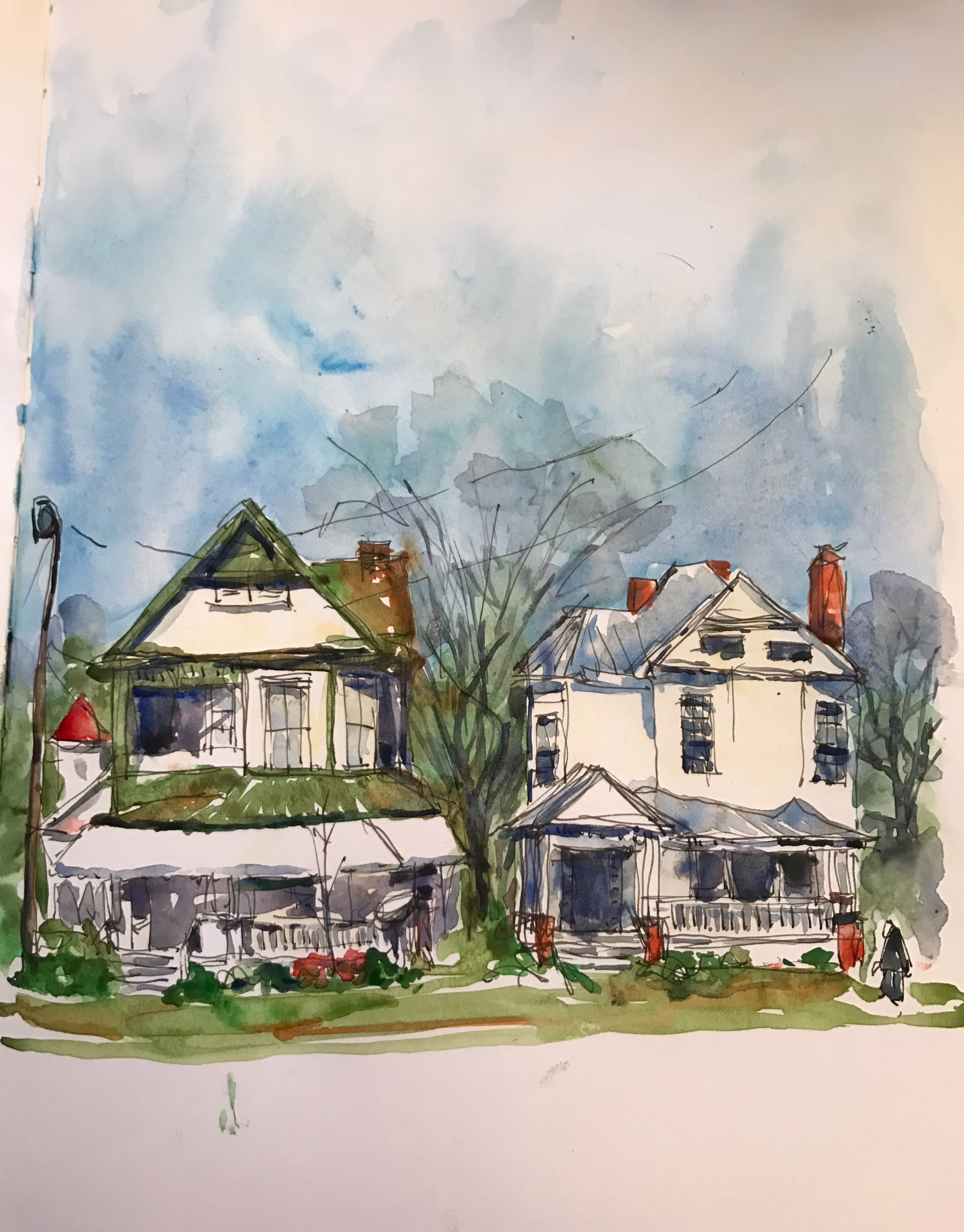 All but the last one are done with a Pentel brush pen, whisky painters box with Winsor newton watercolors plus Daniel Smith Quin coral in a super aquabee 11×14″ tablet.