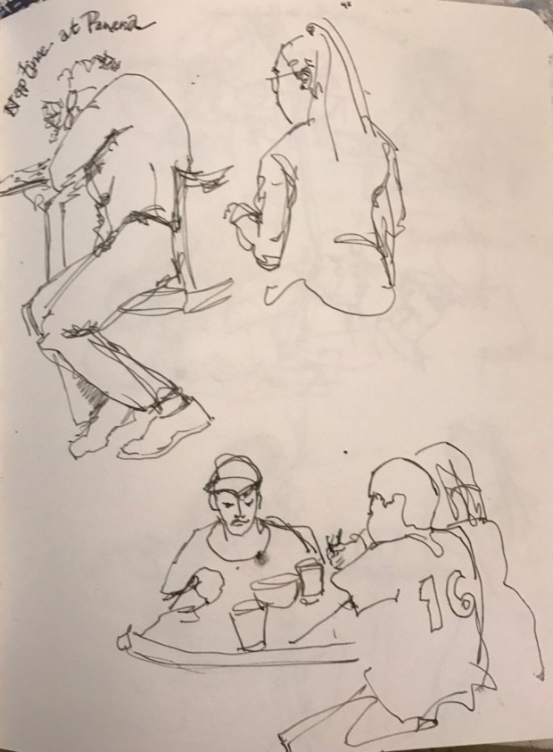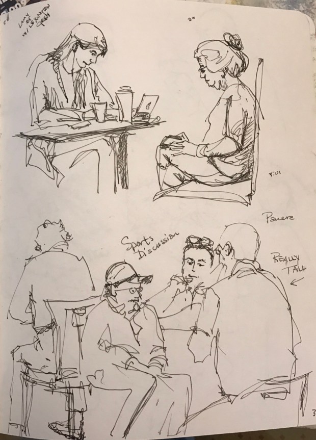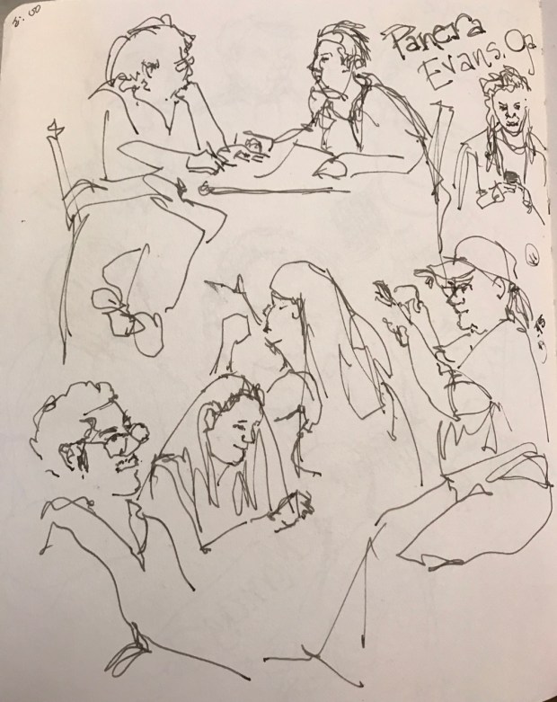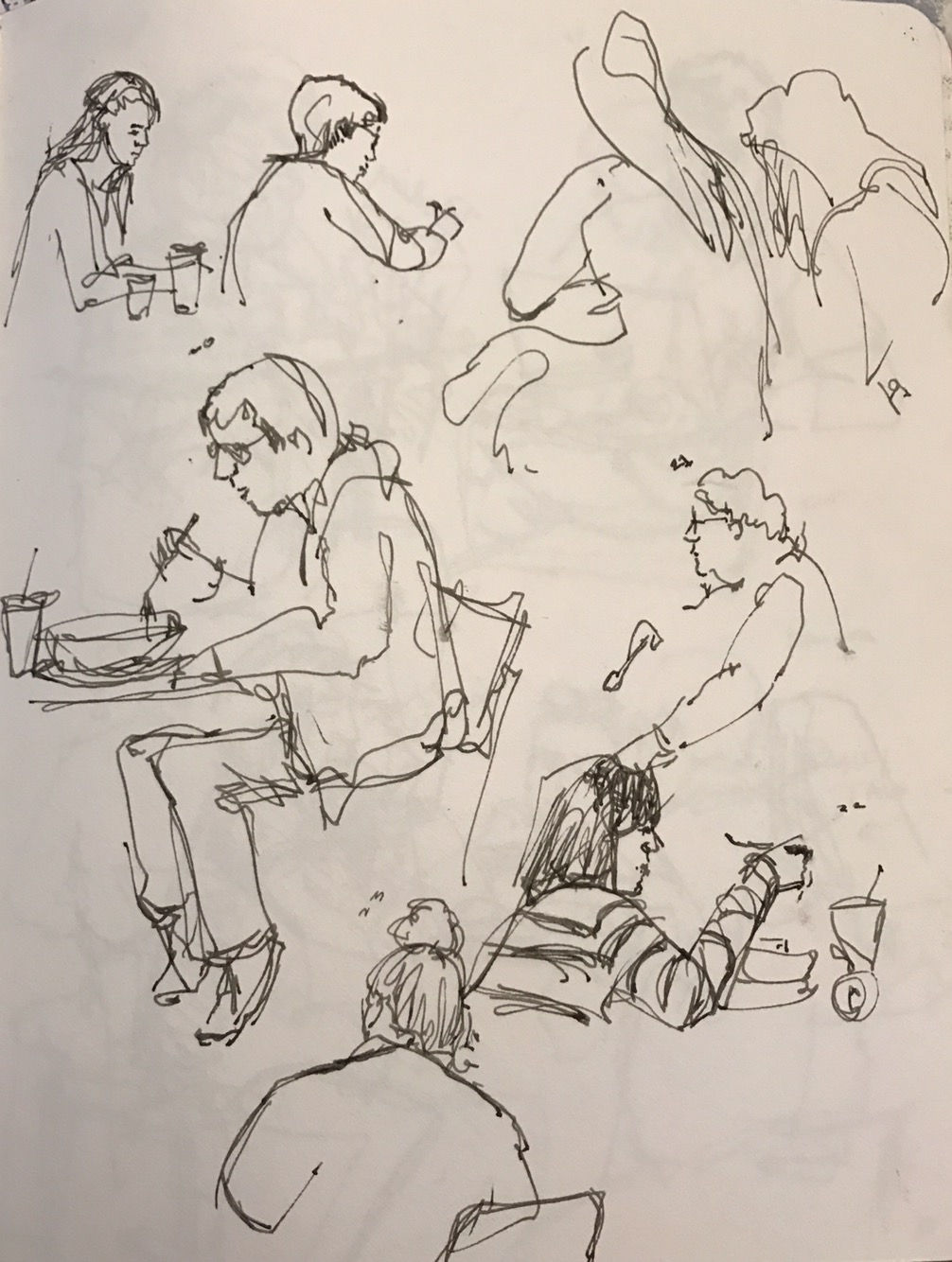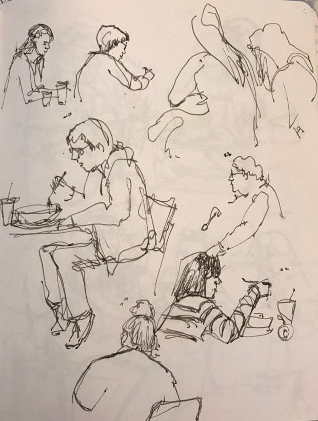 All of them are drawn with my Lamy safari in Lexington Grey ink in my Stillman and Birn Alpha. Most were drawn from real life except the 20 or so talking heads.
