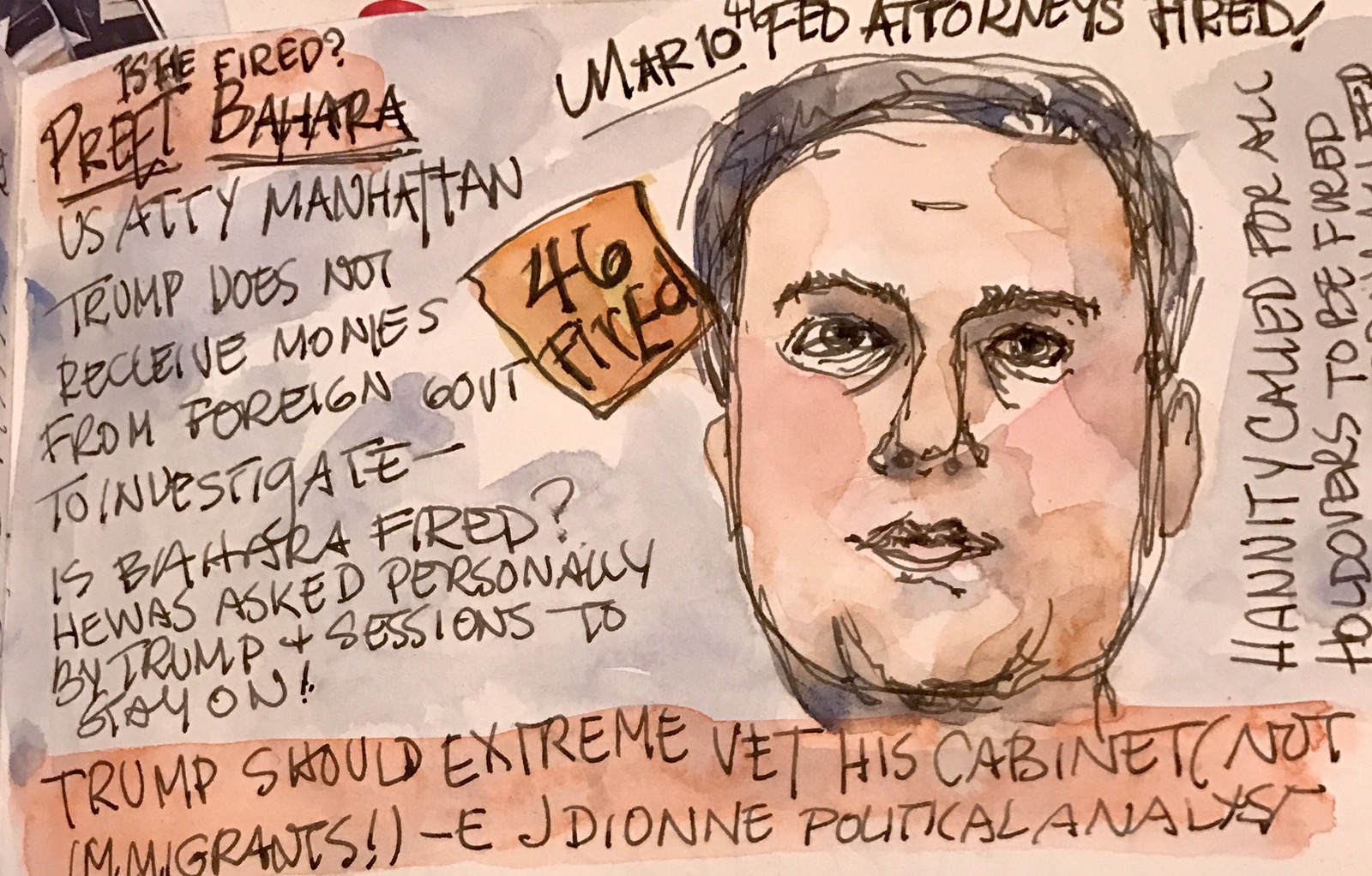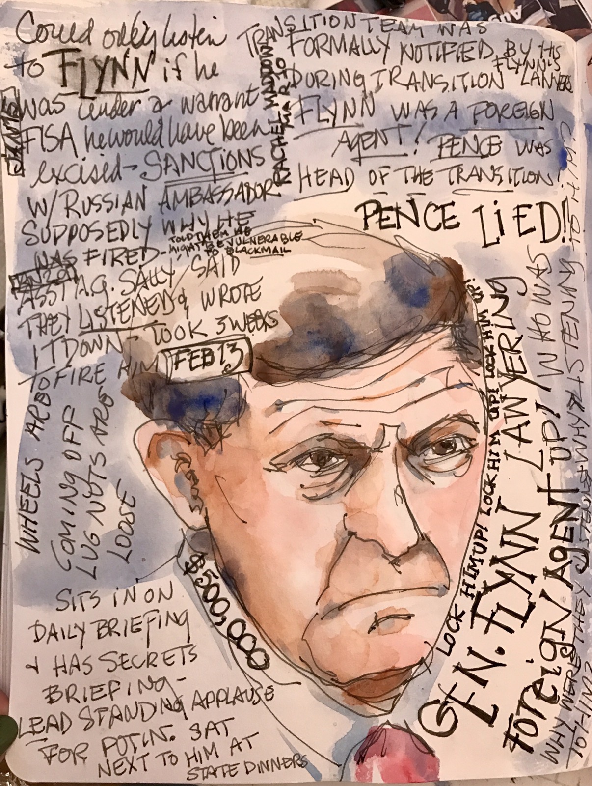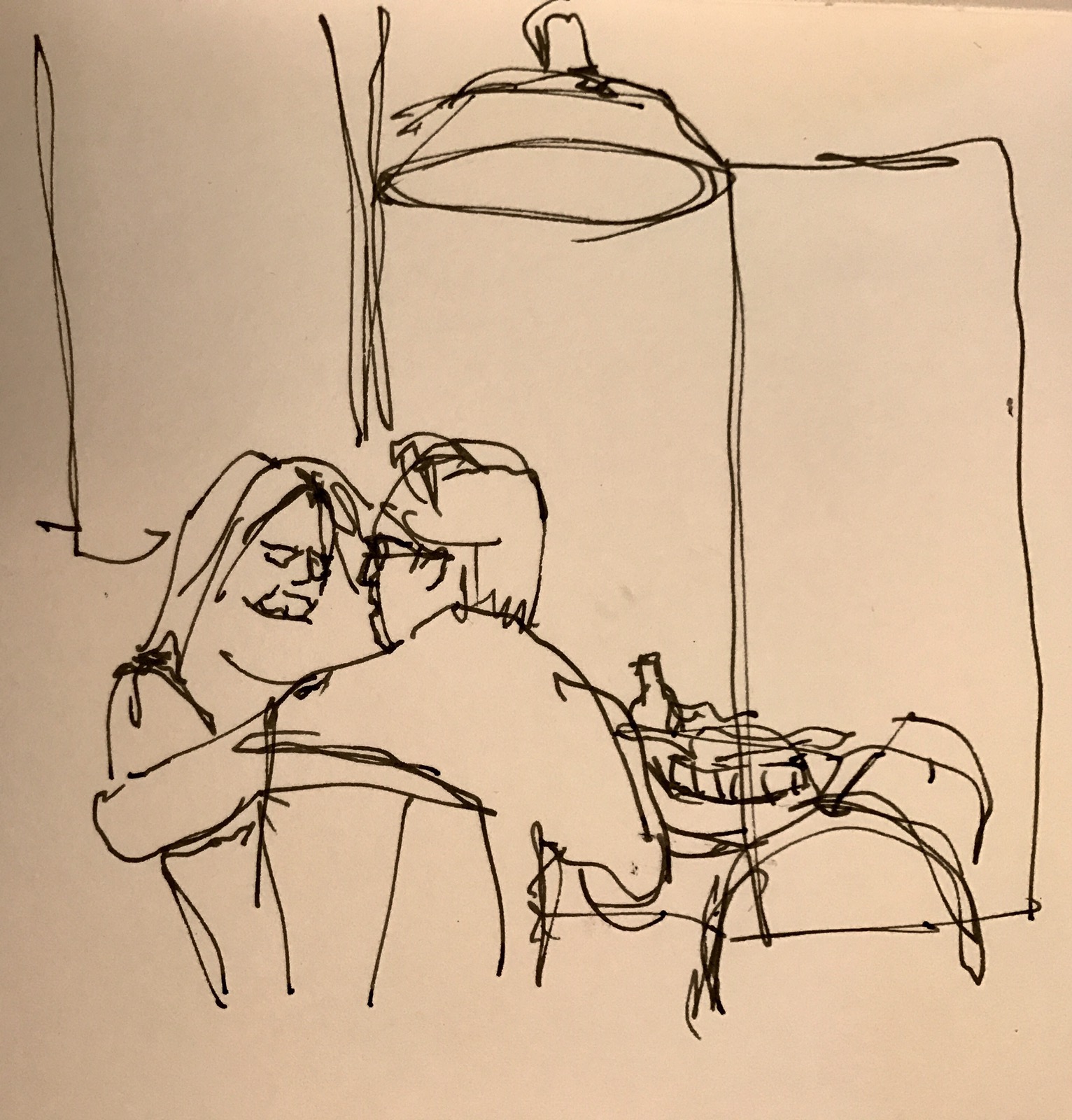 At the races. I was afraid to shop out my sketchbook after I did this because a certain bird was busy telling people what a great sketched I was.