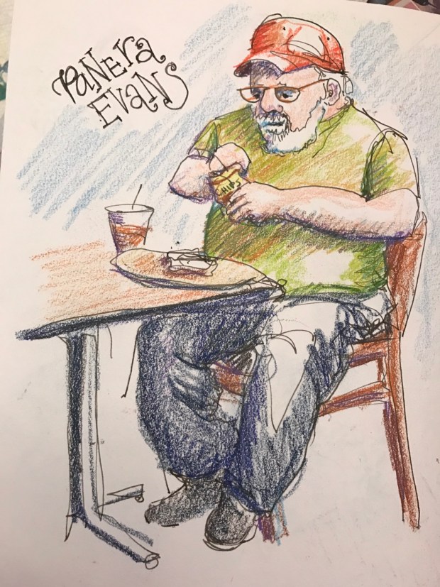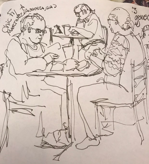 Well I made it. Added another another 14 people yesterday when we were at the Standardbred Harness Races yesterday at McGhees Mile Track in Aiken. Starting from the last one draw to the first one drawn at the end of the post. I am going to paint some of these today I think since this is day 7.