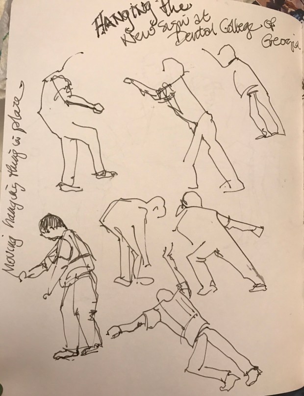 Contour drawings because they were moving fast. The angles they got on their bodies were as good as any dancer or yoga as they pushed and shoved the heavy scaffold.