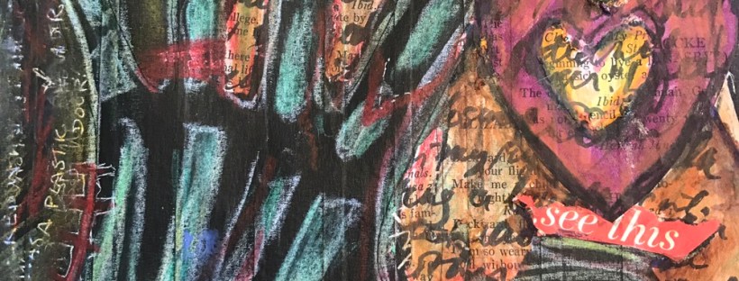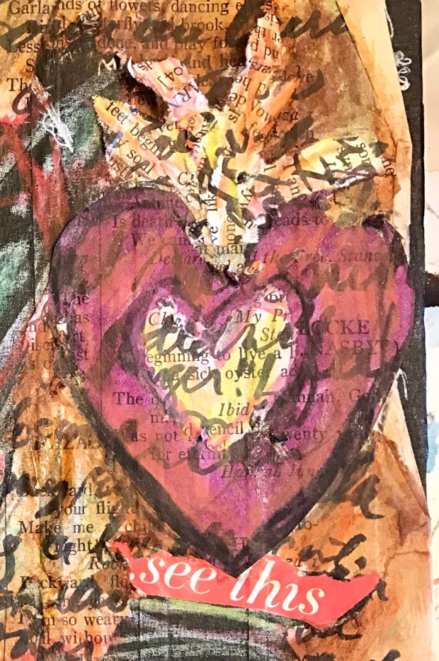 The milagro heart was also a piece of the same Louisa May Alcott page. The shreds of the ripped up letter cut out like a heart and glued and colored. After all sometimes our hearts need a miracle.