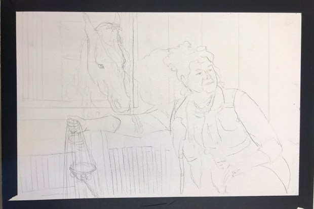 I love the light in this painting. It just glows with fall light raking across the horses and riders, glinting off the broom straw and buildings.