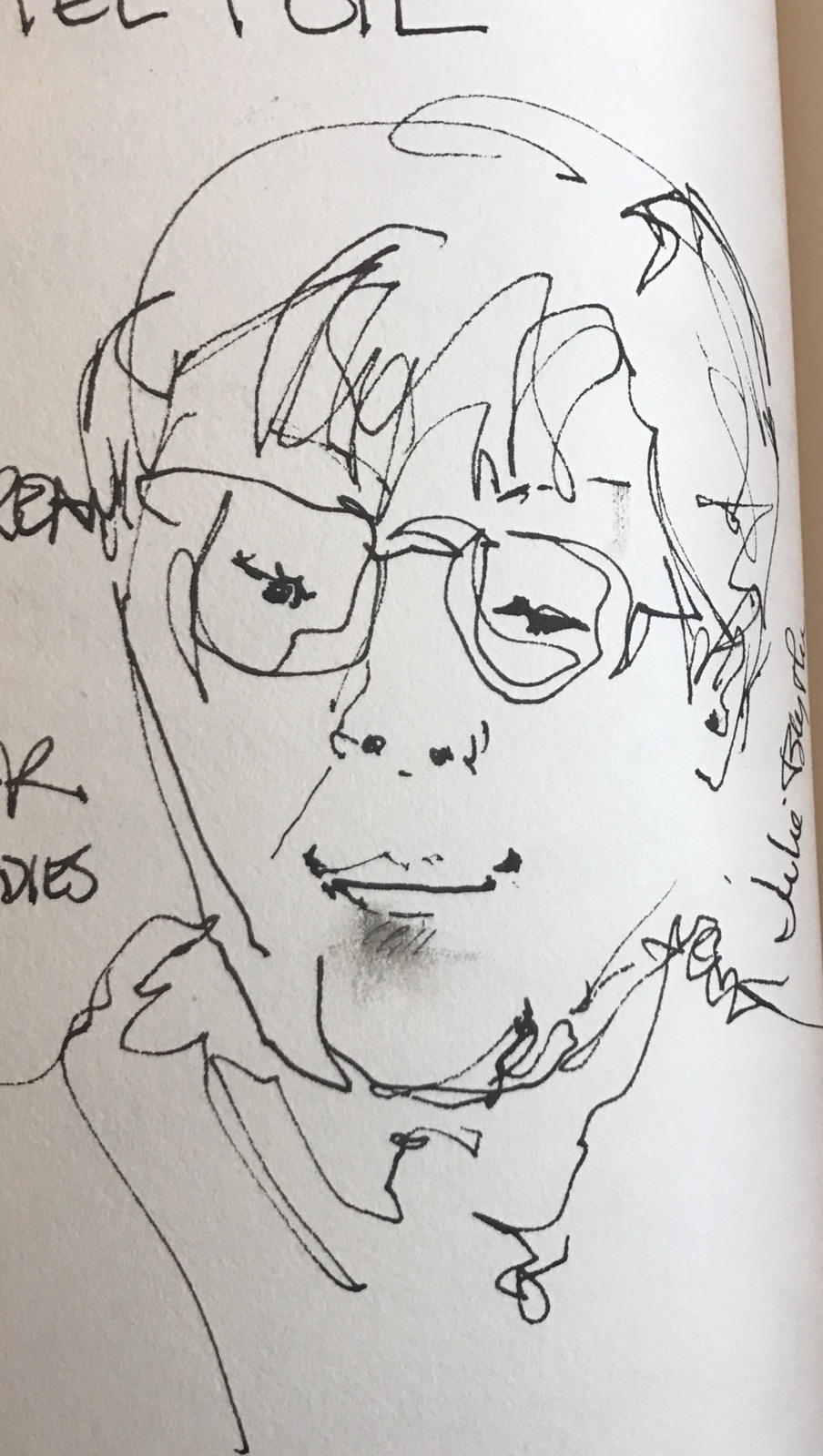 His bio says “He was attracted by the interplay between the solidity of buildings and the patterns of light and shadow they created, interspersed with people, the snap of a clean sheet drying on a clothesline, and the shape of trees and bushes.” An early urbansketcher!