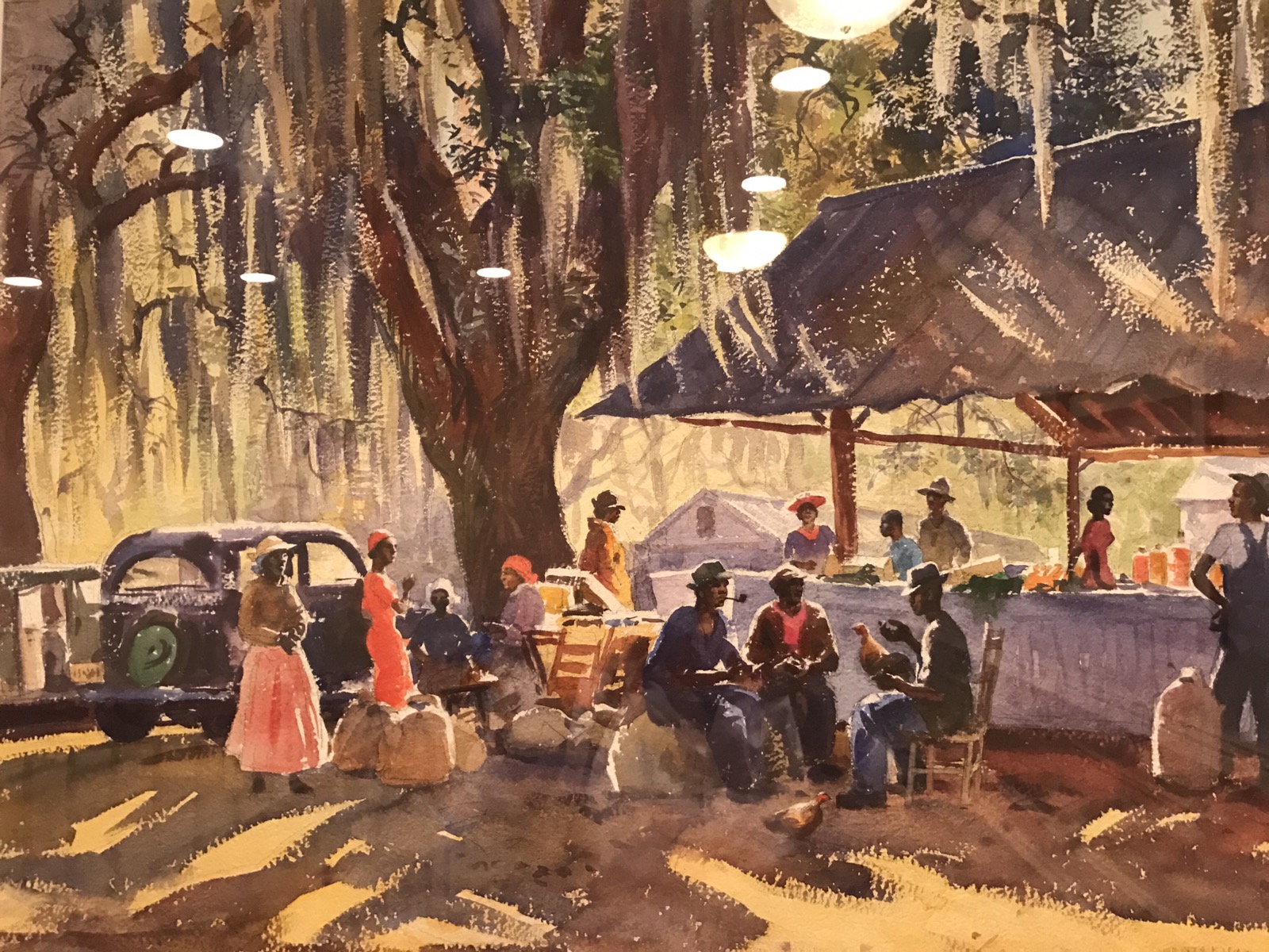 When you enter via the stairs the first thing you see are the water colors of Aiden Lassell Ripley (1896-1969.). Ripley caught the South in the early 1900s in a series of watercolors and prints that line the hall at the top of the stairs.