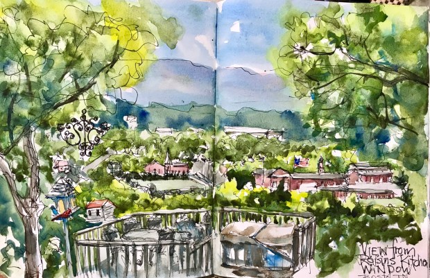 The view from My friend Raisins kitchen of Bristol TN spread out below. A rather amazing view to stare at when you wash dishes at the kitchen sink.