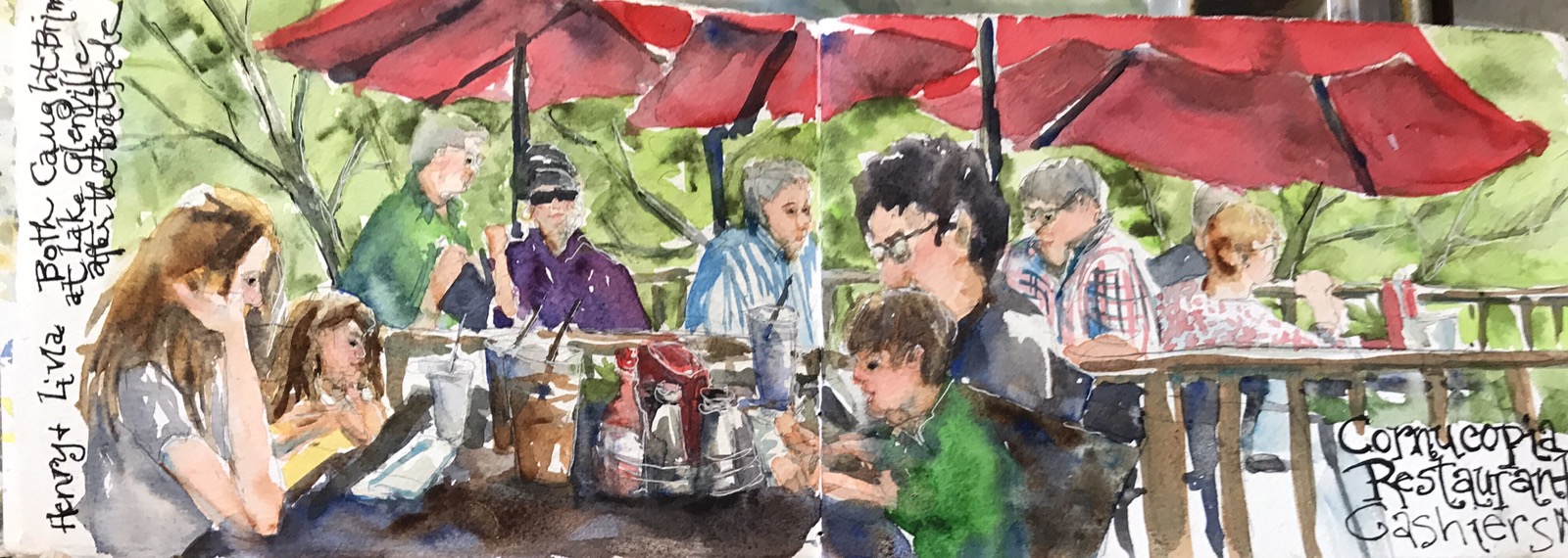 Our favorite place to eat Cornucopia in Cashiers. A great big open air barn of a restaurant. Even when you eat inside it’s like eating outside. They do have a large section of umbrellas to eat under too.