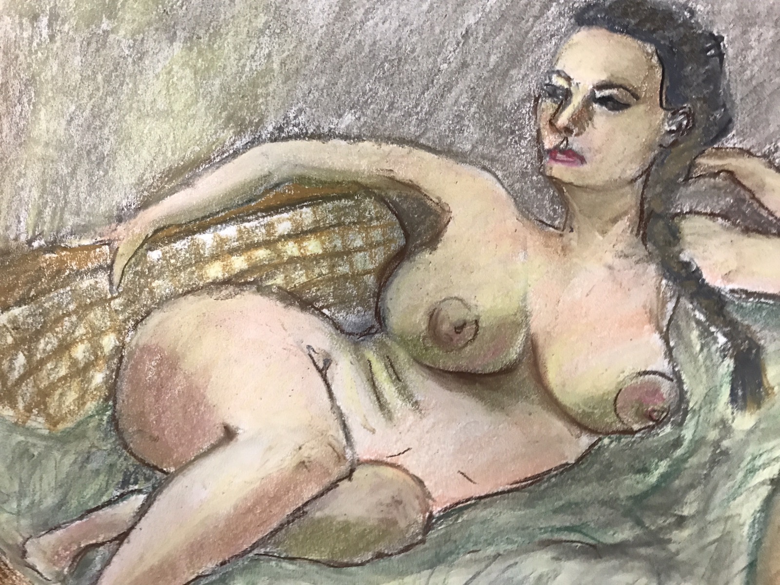 Al Beyer’s huge oil. Always interested in that top arm. Somehow it looks off but it isn’t. Or it gives her the look of flying thru the air.