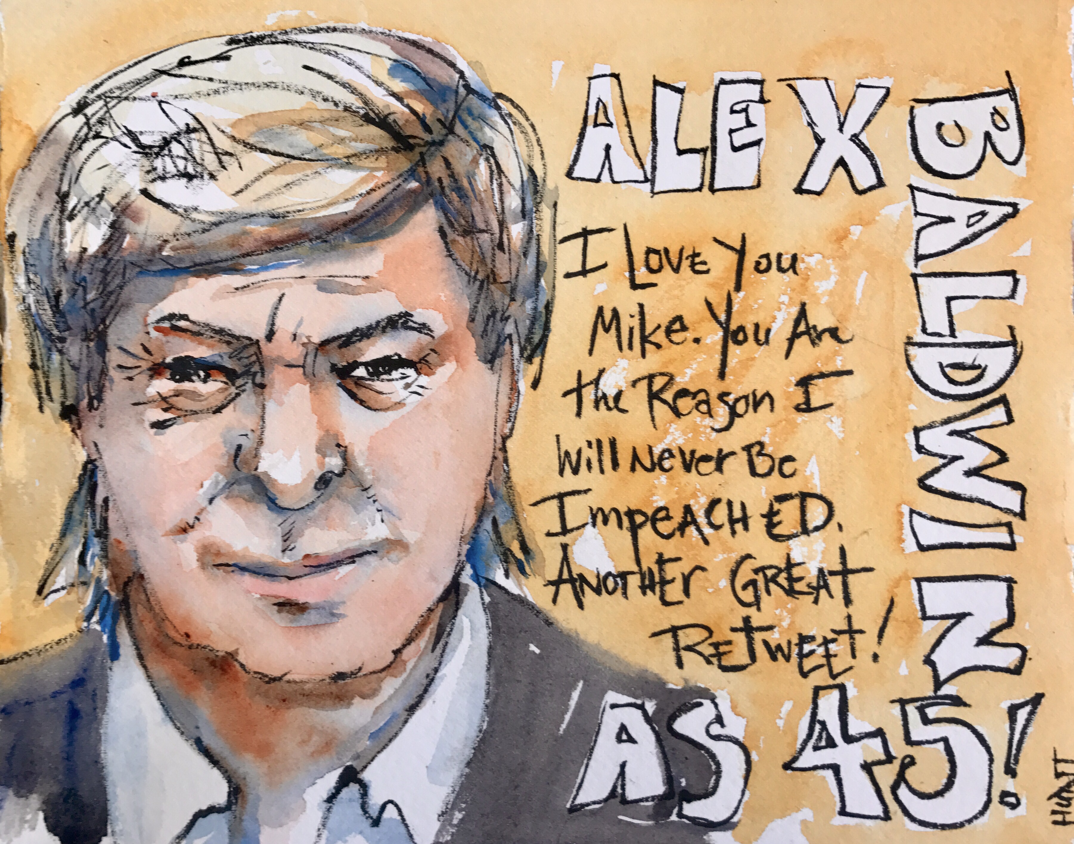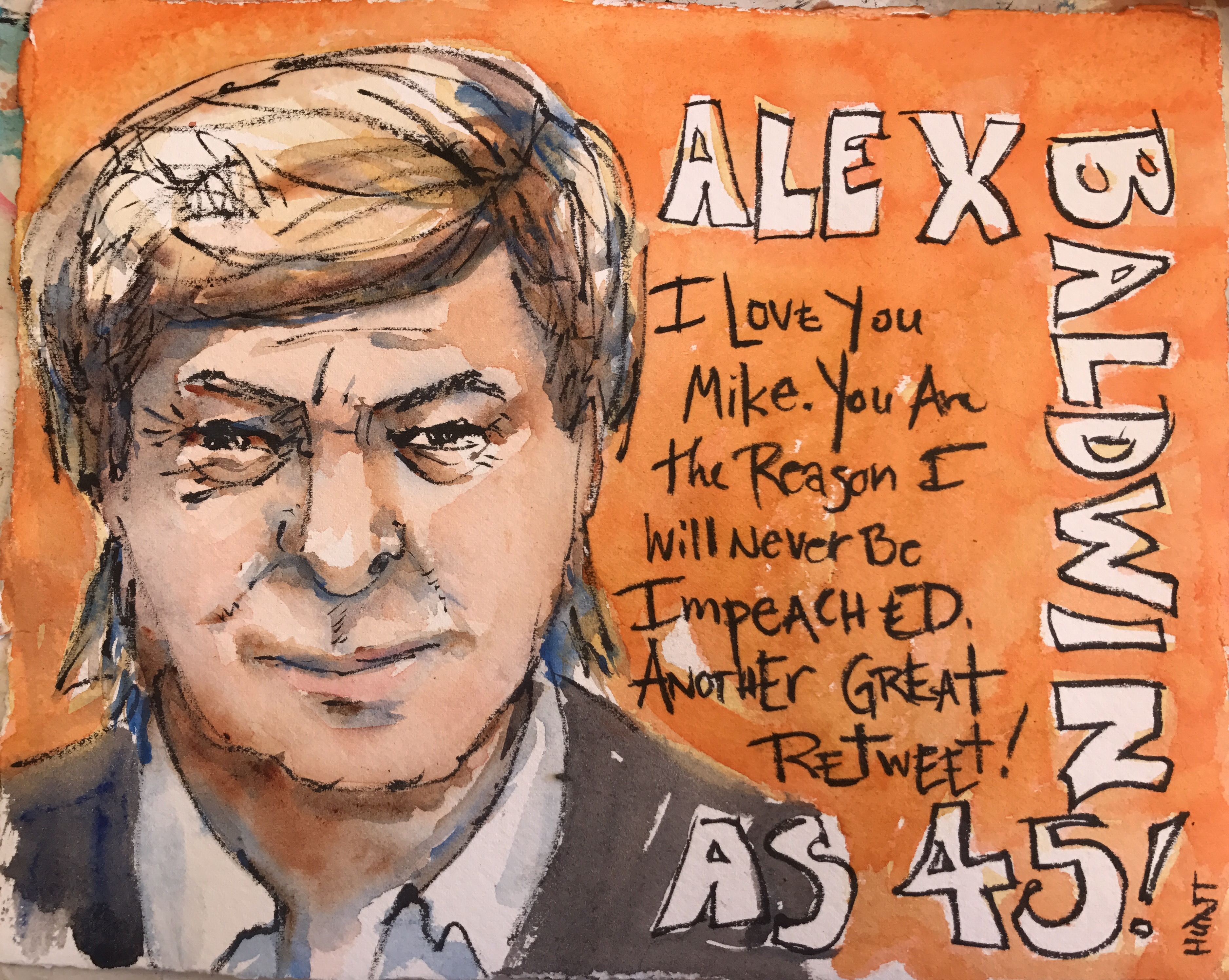 Alex Baldwin ( FOR SALE at Wolf and Finch Gallery!!) won the Emmy for best supporting actor last night so I had to repost this. He was awesome. Cracked me up when he said “I suppose I should say Mr President here is your Emmy! ” what else can I say. Drawn live off of CBS Sunday Morning. I meant to draw A,ex but he wanted me to draw him and DT.