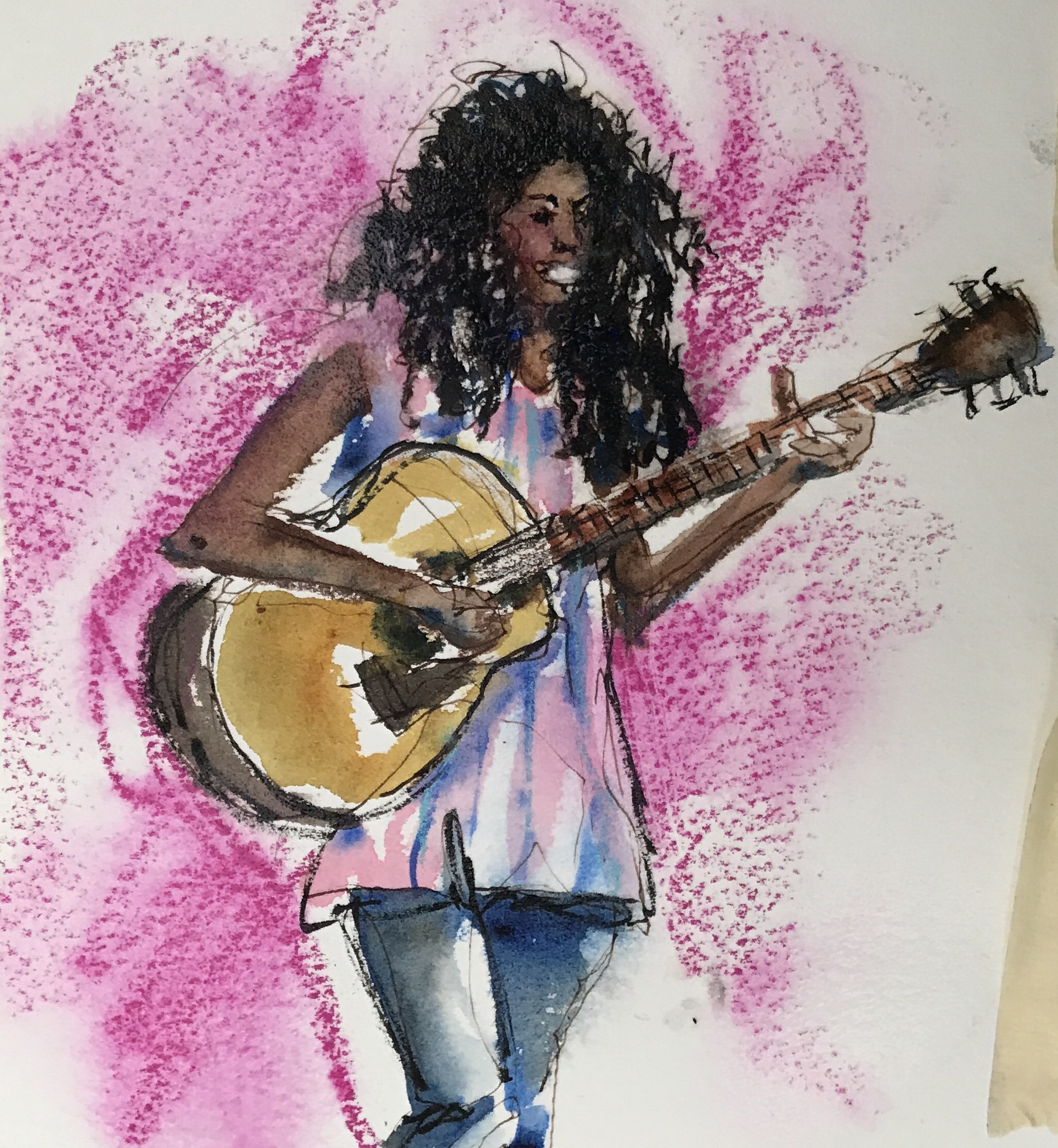 Drawn with a pentel brush pen on arches cold press 300#. Painted alle prima with Ted Nuttalls transparent palette.
